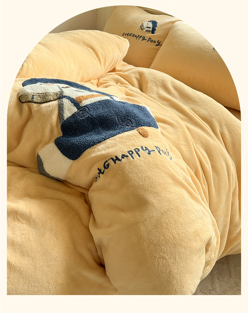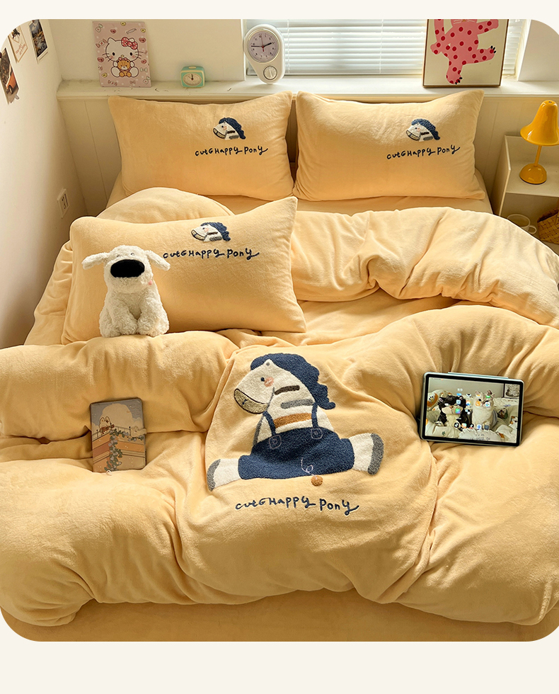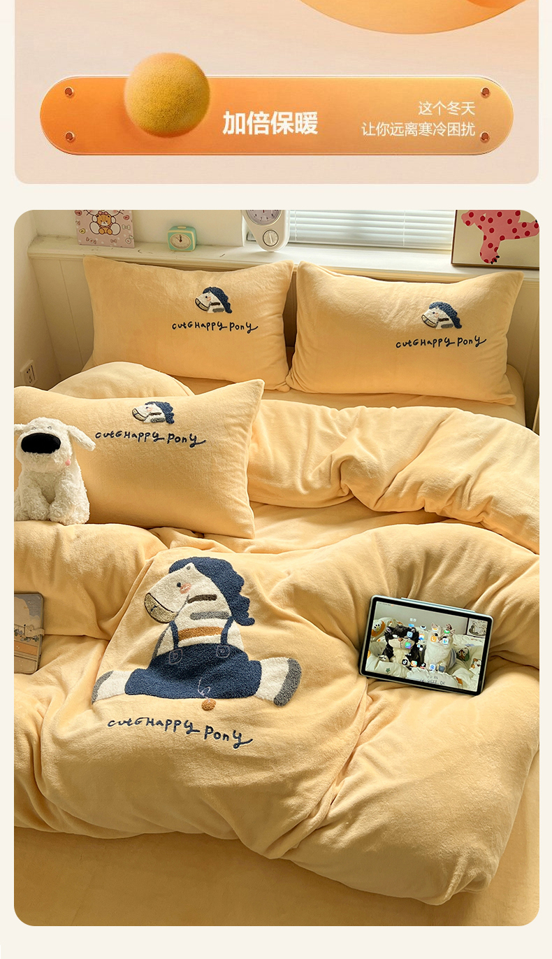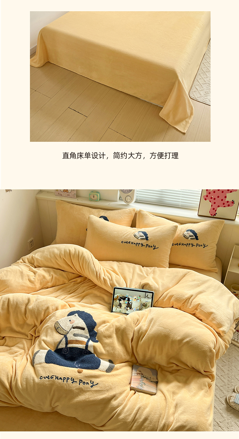 凯洛奇 2025新款牛奶绒毛巾绣系列四件套-斑马先生(提供买家秀) 斑马先生-柠檬黄