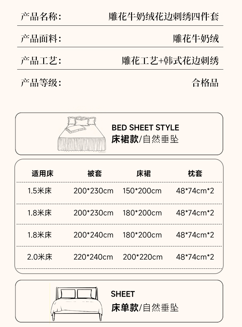 【床裙款】1.5四件套-被套200x230 | ¥181.00 |