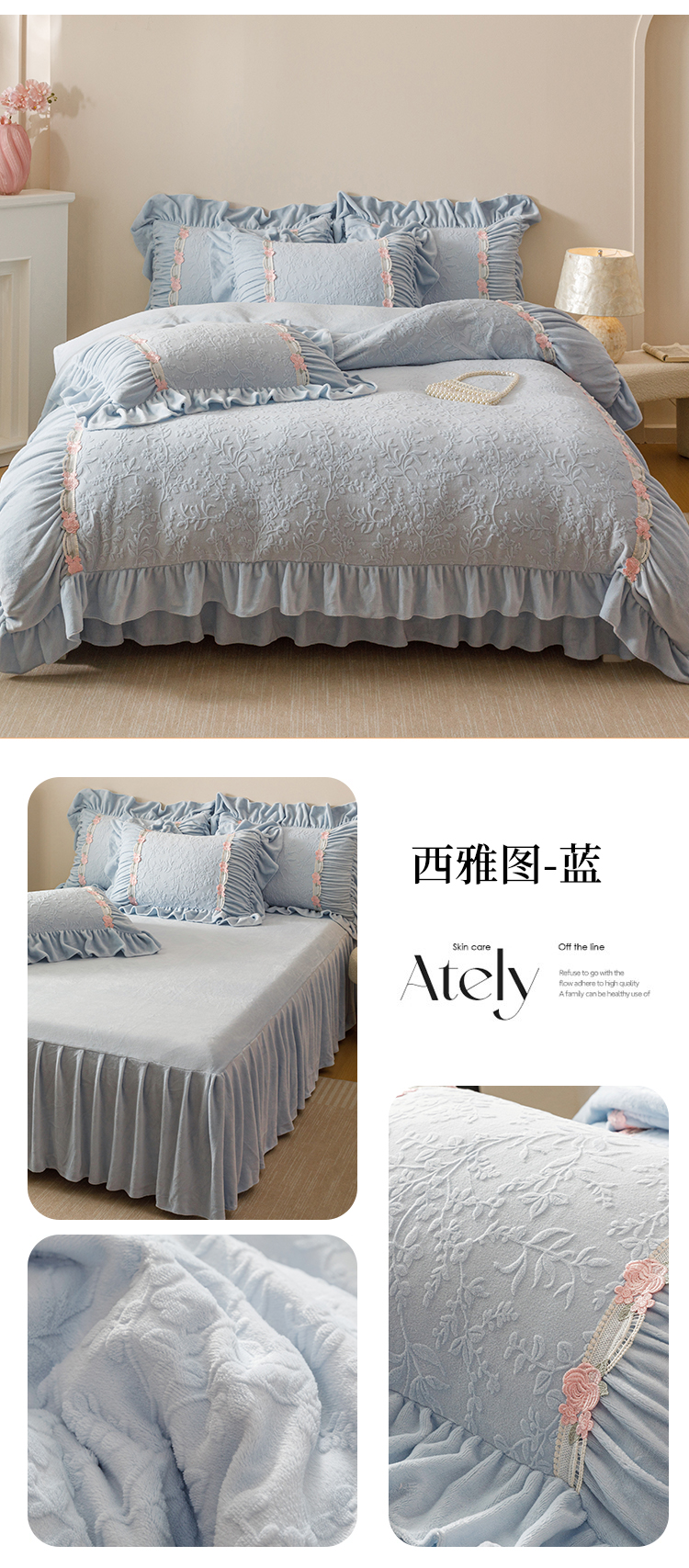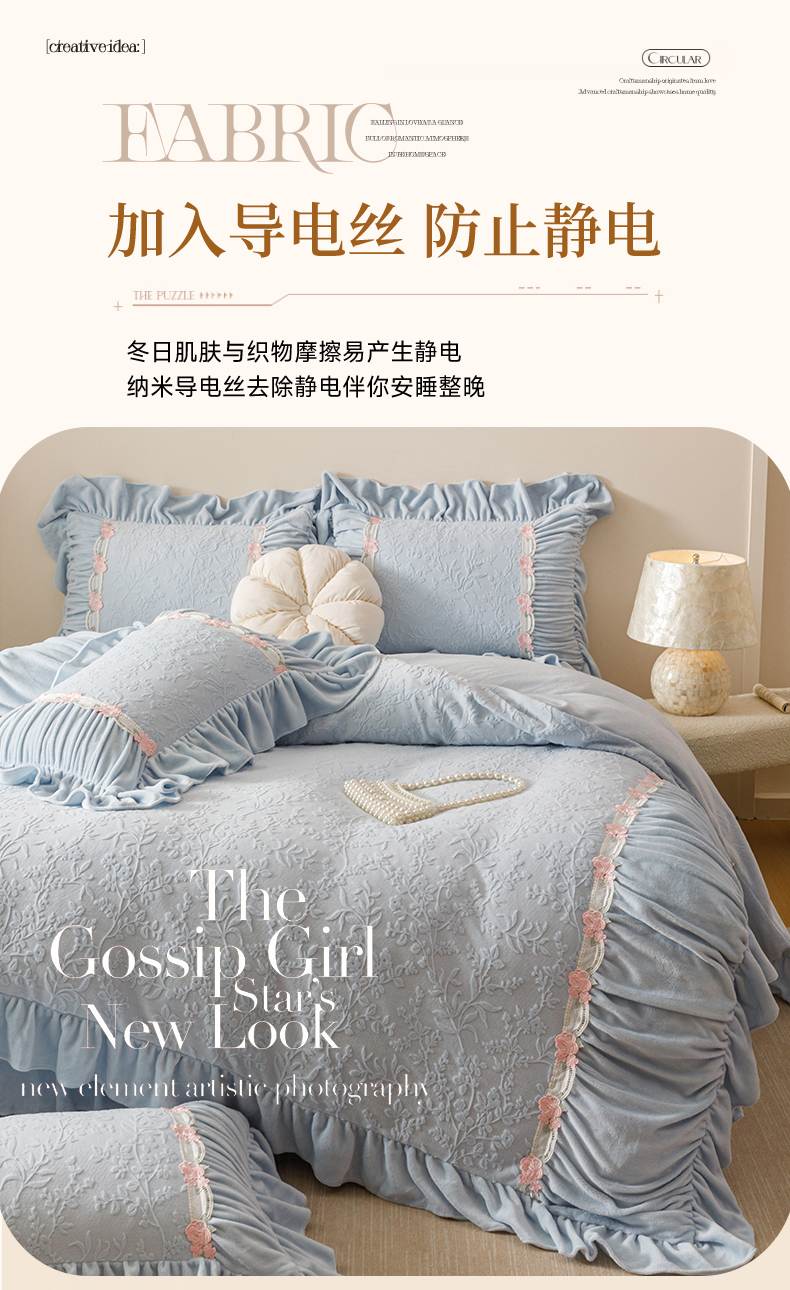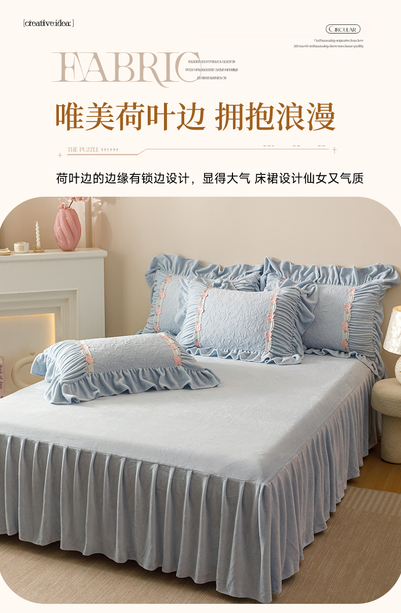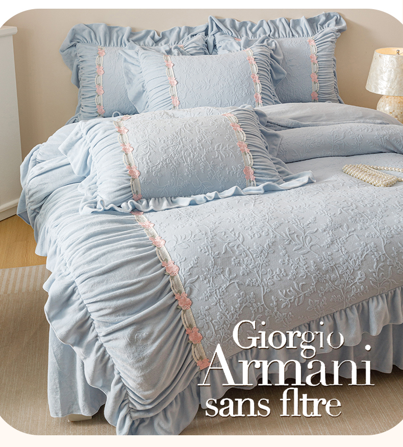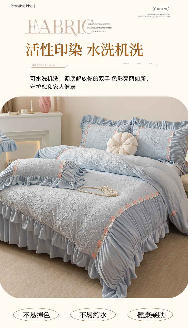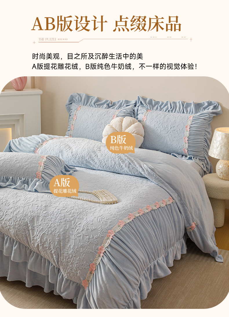 当前位置: 91家纺网 > 商品网购 > 床品套件 > 四件套 > 牛奶绒四件套 > (总)好儿喜家纺 2025新款雕花牛奶绒床裙款四件套—西雅图系列