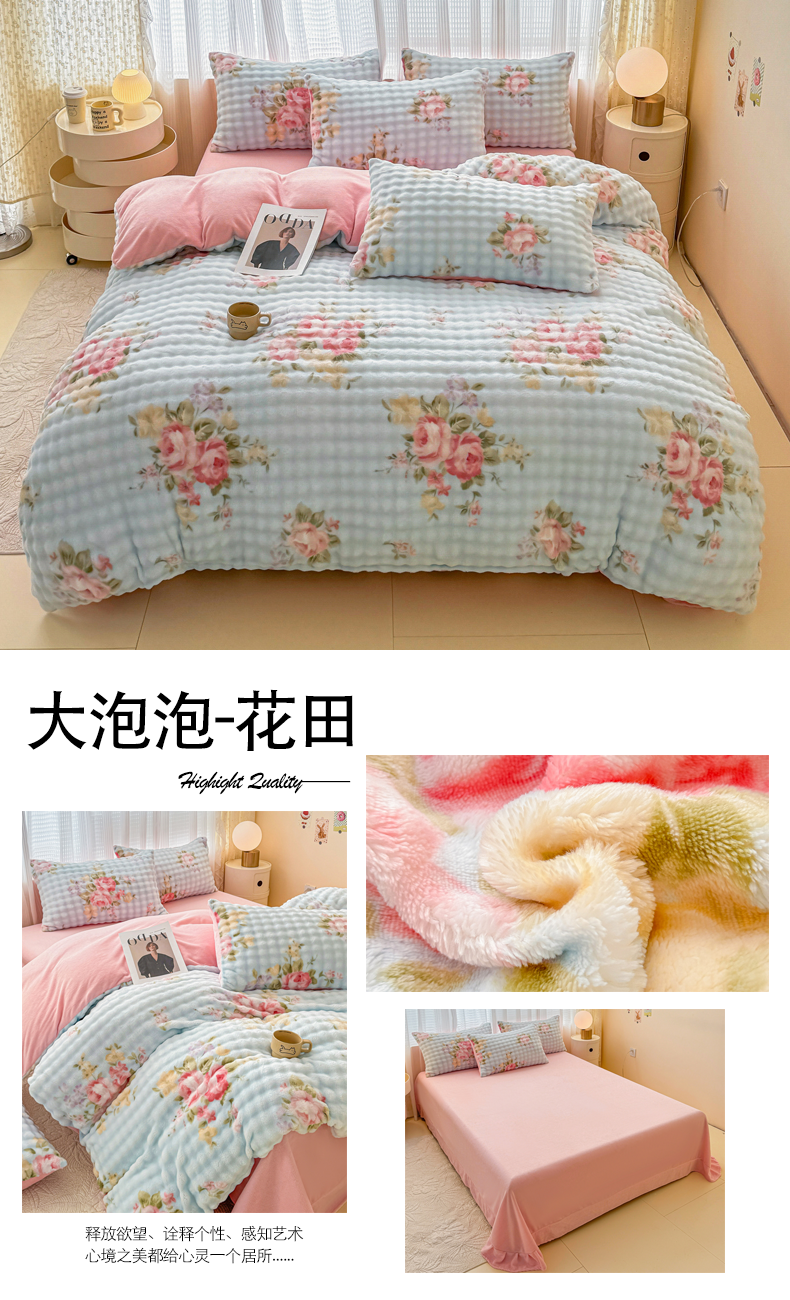 • 91家纺网 家纺一手货源 找家纺 小叮当家纺仓储工厂店 2025新款印花兔兔绒牛奶绒大泡泡单被套 被套单件 大泡泡-蝶梦花