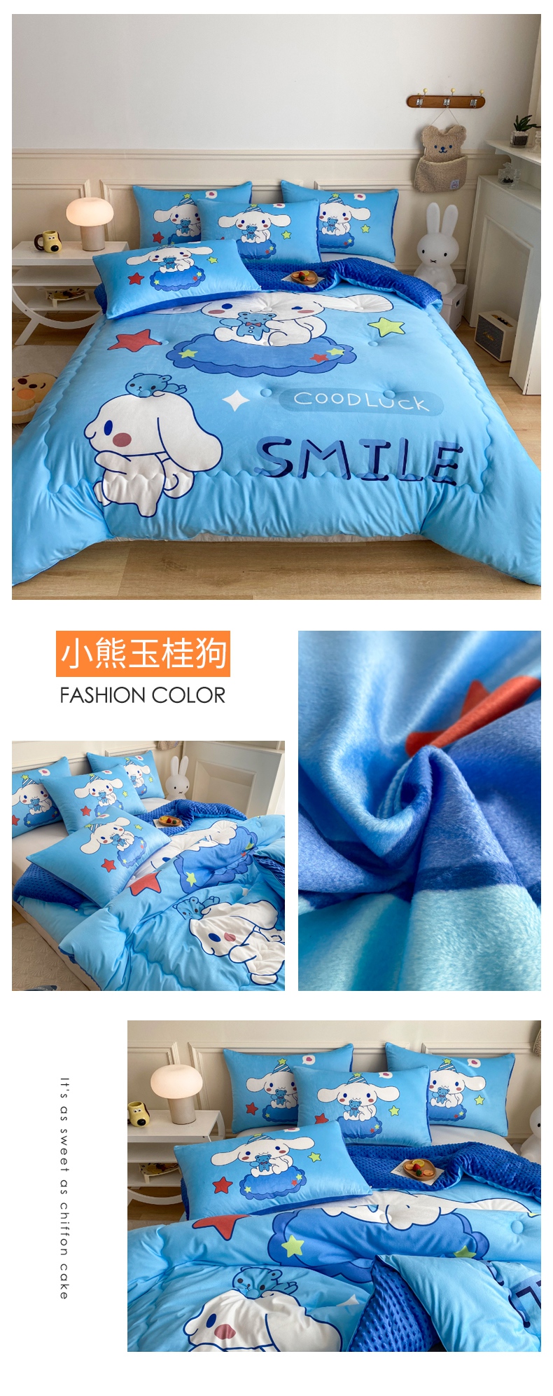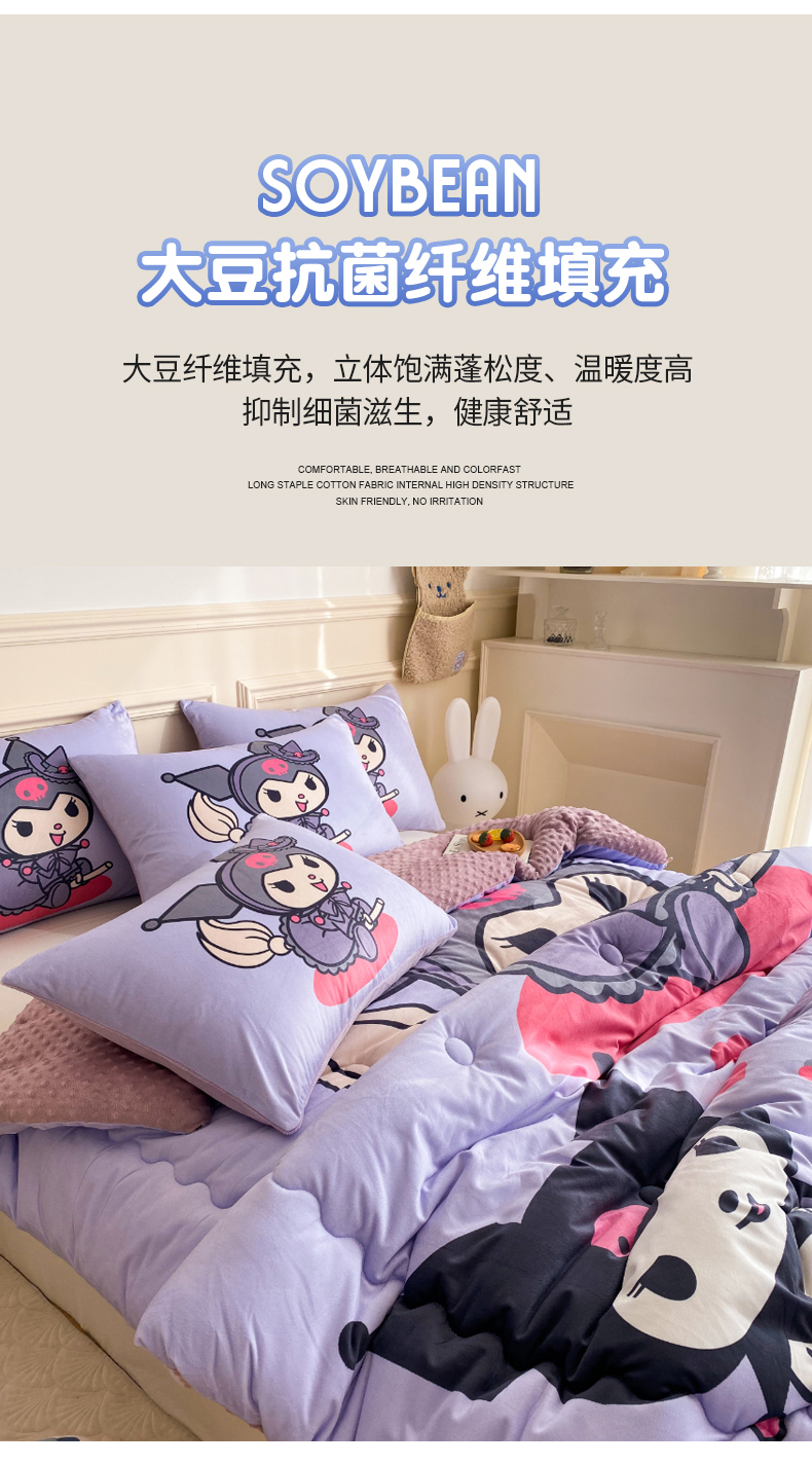 (总)一电 2025新款冬季双面牛奶珊瑚绒床上四件套法兰绒床品加绒被套床单三件套-第三批,公主库洛米,天使库洛米,甜筒库洛米,小兔子,圆点库洛米