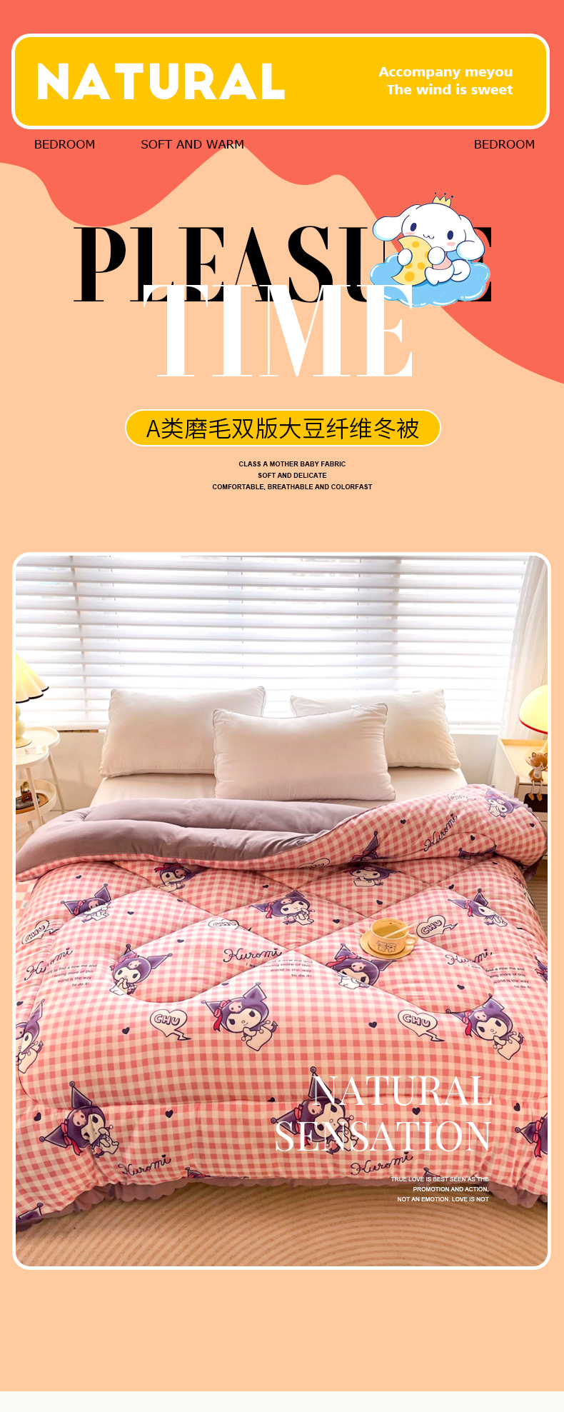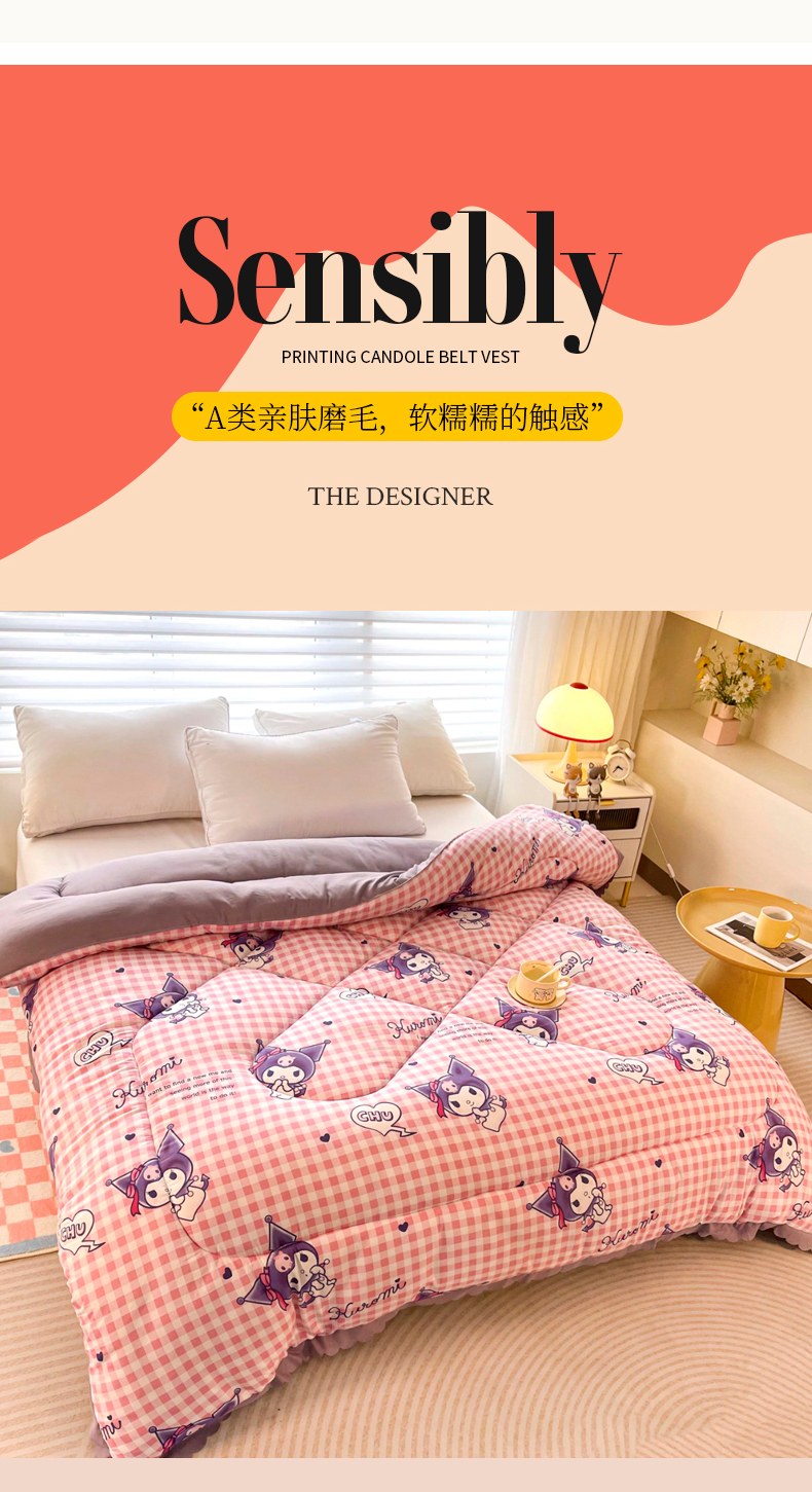 • 91家纺网 家纺一手货源 找家纺 (总)一电 2025新款双面牛奶绒被套单件150x200儿童加厚法兰珊瑚绒被罩200x230冬季-第三批,公主库洛米,天使库洛米,甜筒库洛米,小兔子,圆点库洛米