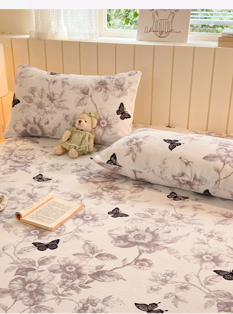 丽美人家纺 2025新款牛奶绒小版枕套 水墨花蝴蝶