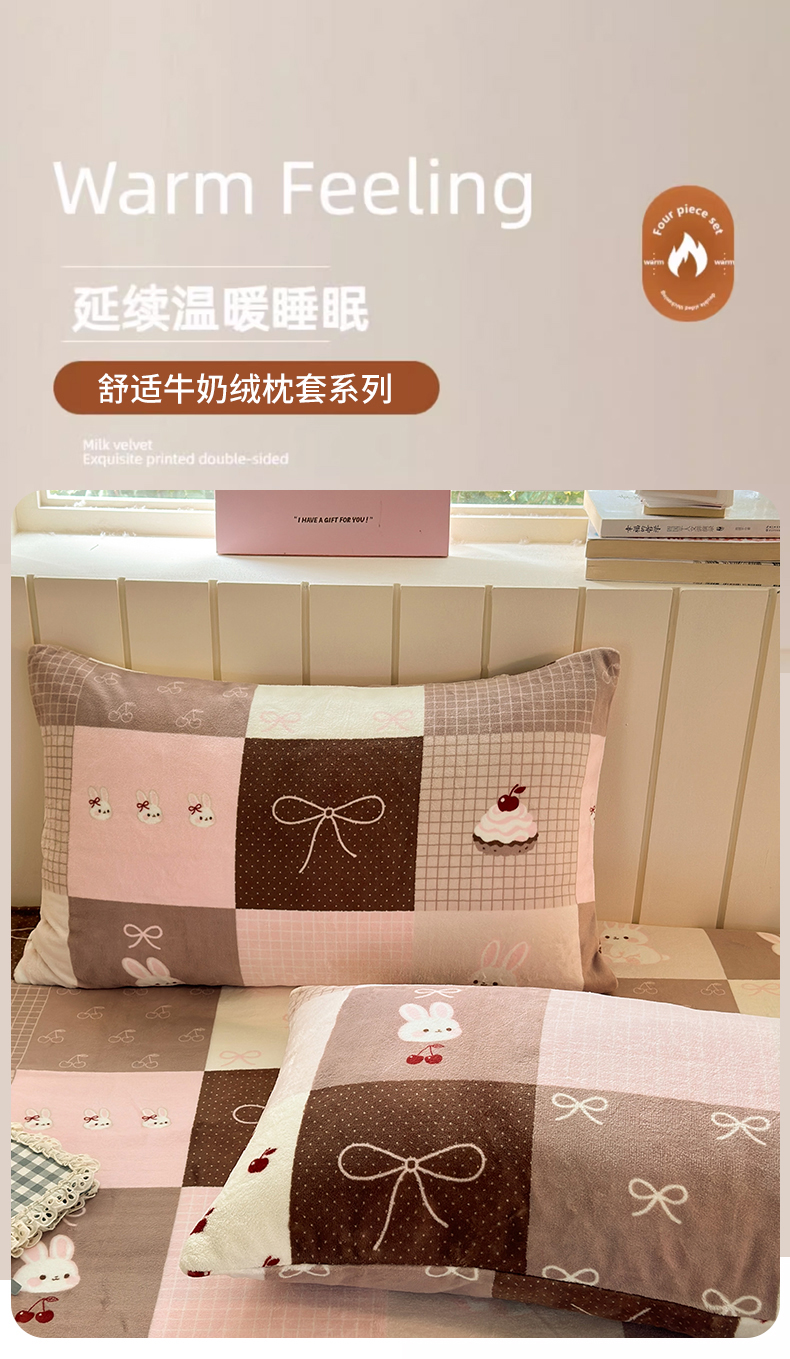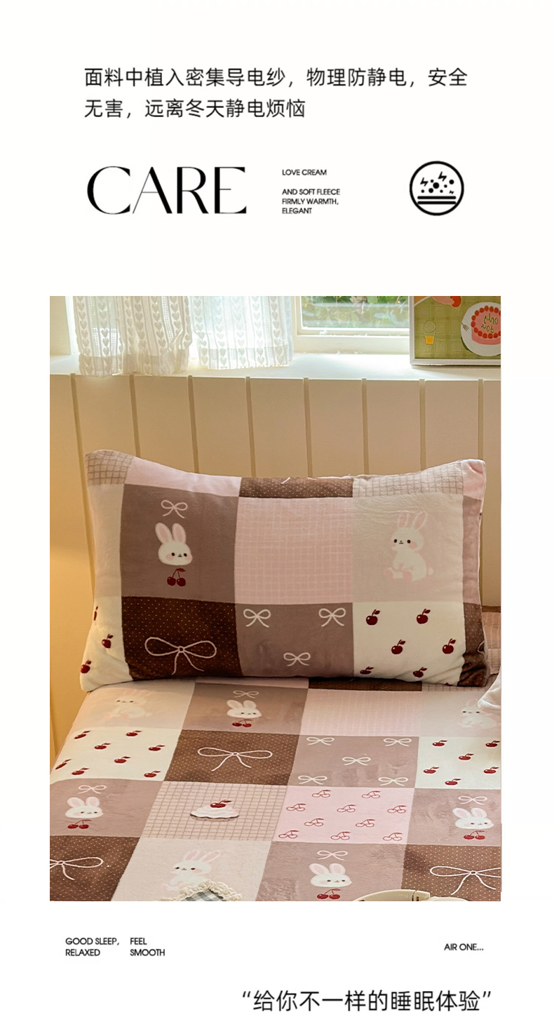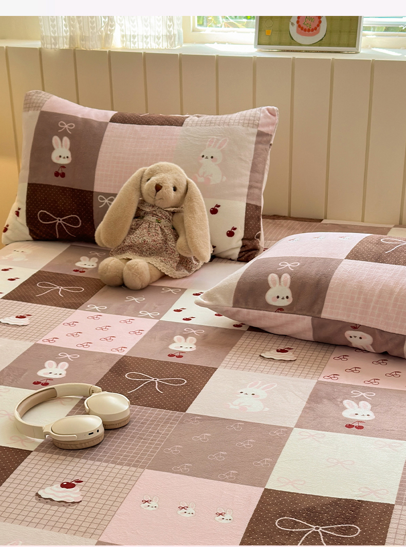 丽美人家纺 2025新款牛奶绒小版枕套 拼布蝴蝶兔