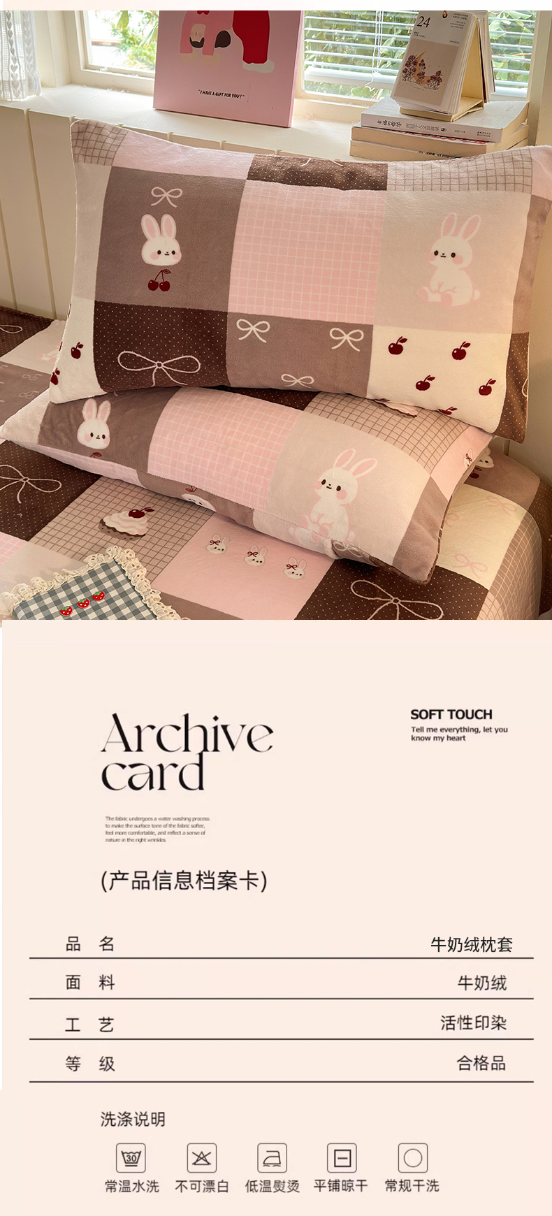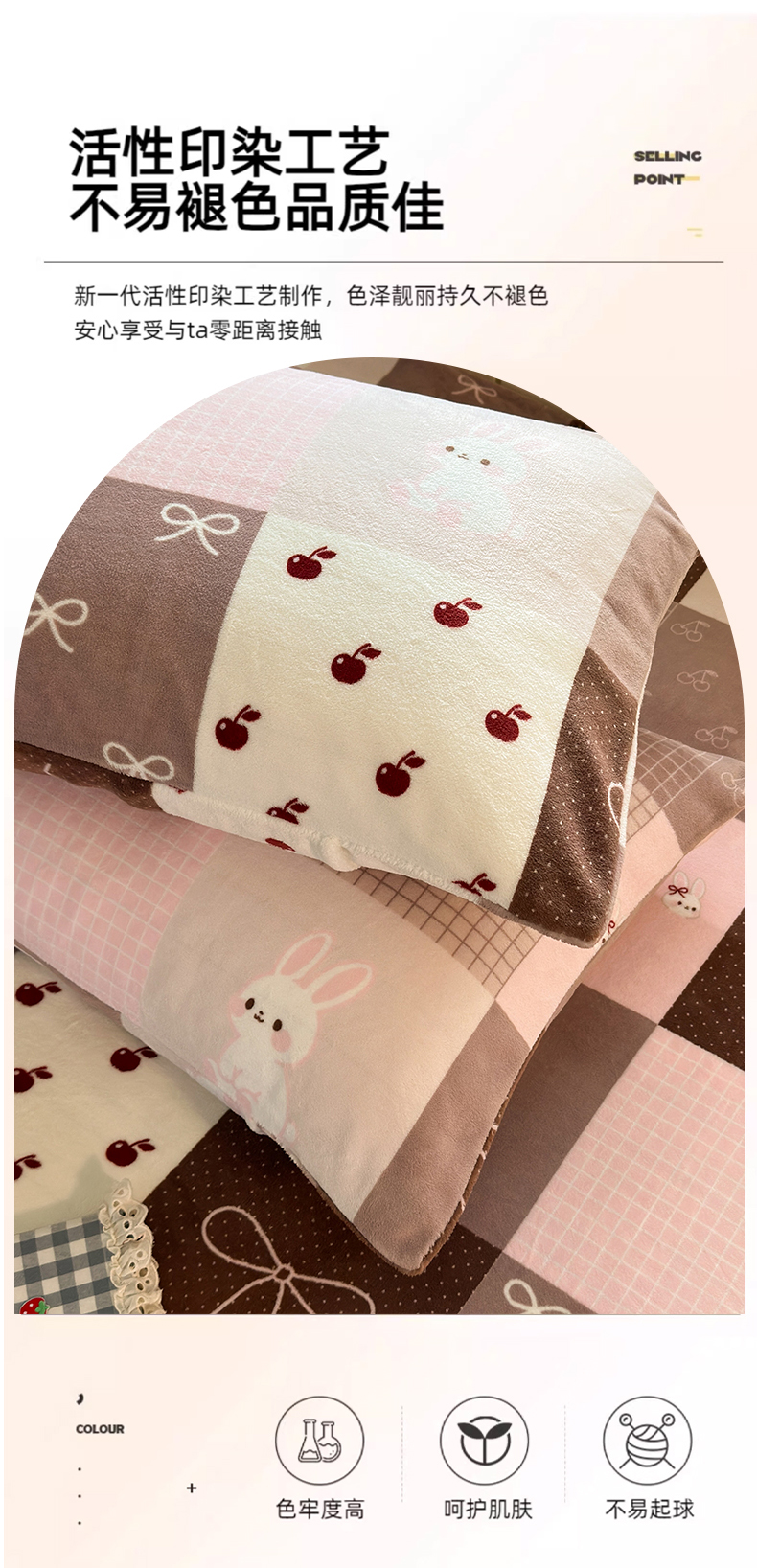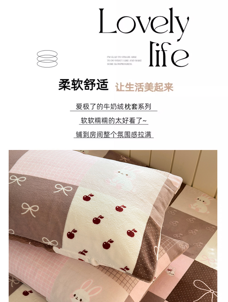 商品名称:丽美人家纺 2025新款牛奶绒小版枕套 拼布蝴蝶兔