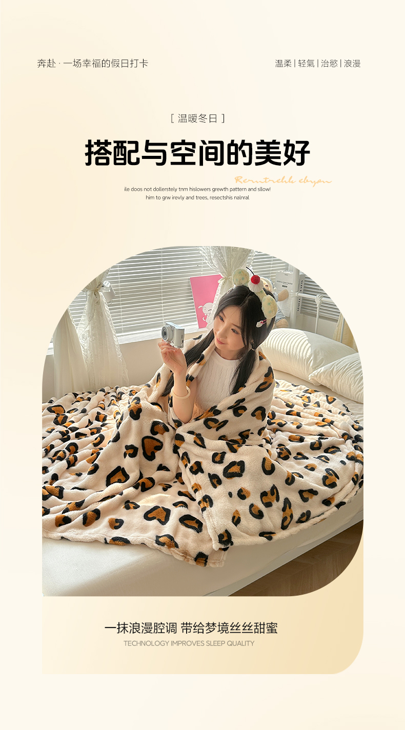 韩巢家纺 2025新款高克重泡泡绒毛毯多功能牛奶绒毯子支持跨境电商 托斯卡纳豹纹