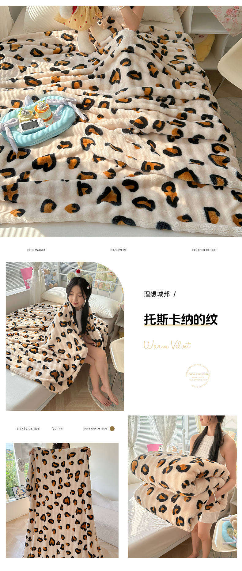 商品名称:韩巢家纺 2025新款高克重泡泡绒毛毯多功能牛奶绒毯子支持跨境电商 托斯卡纳豹纹