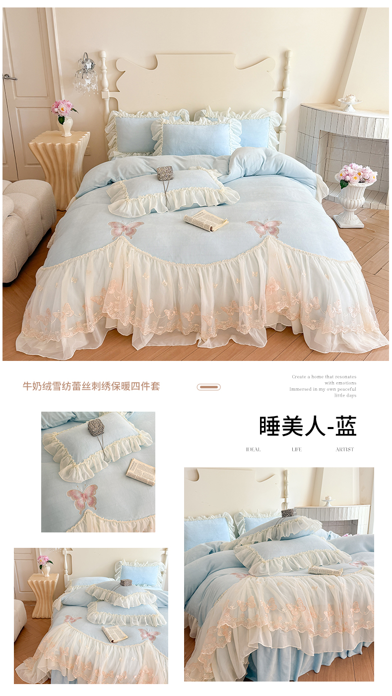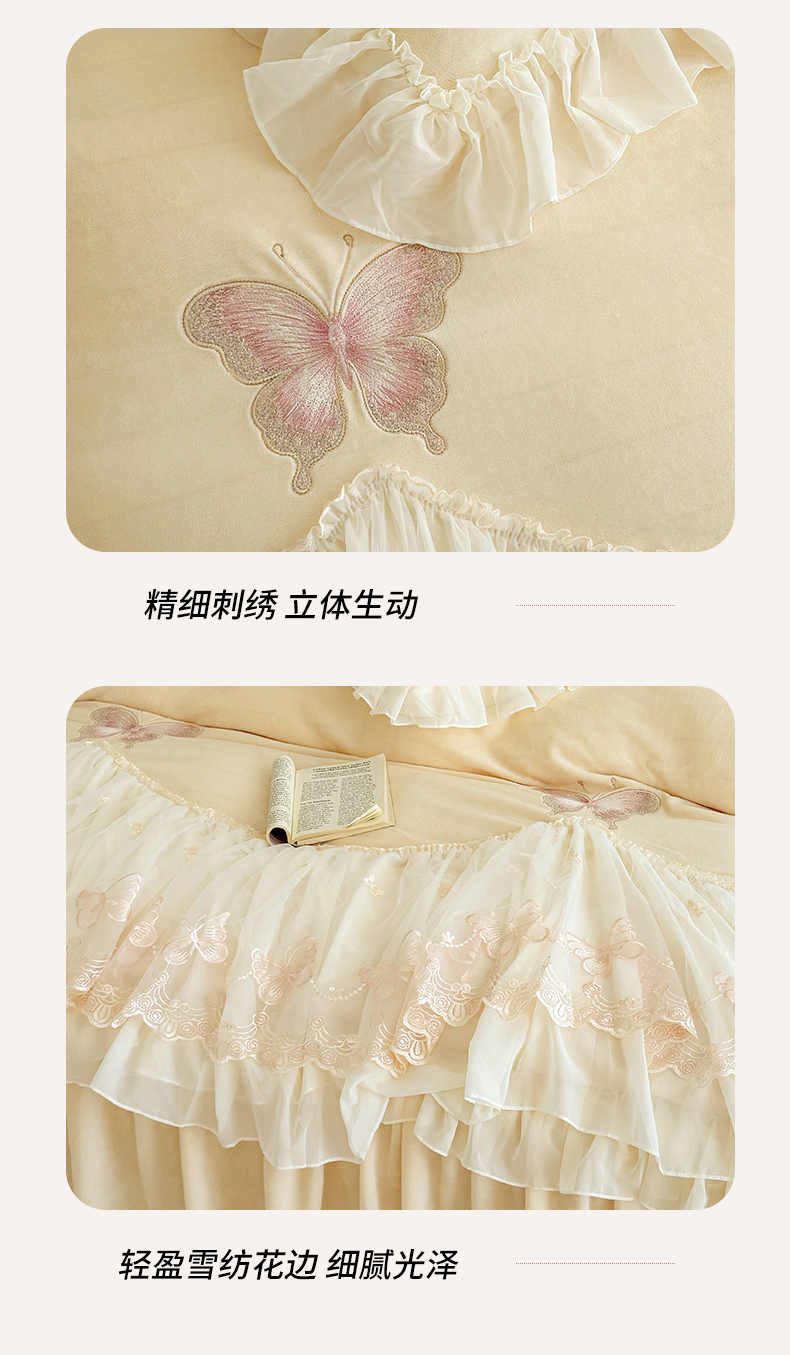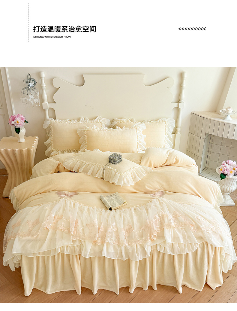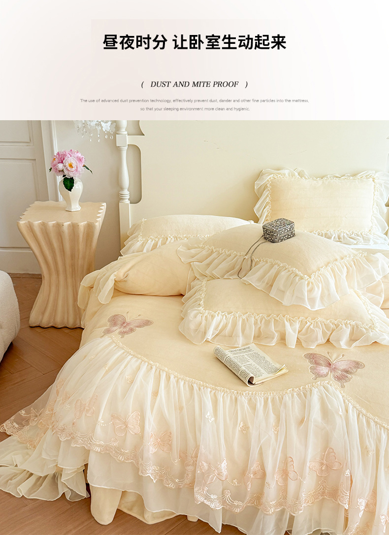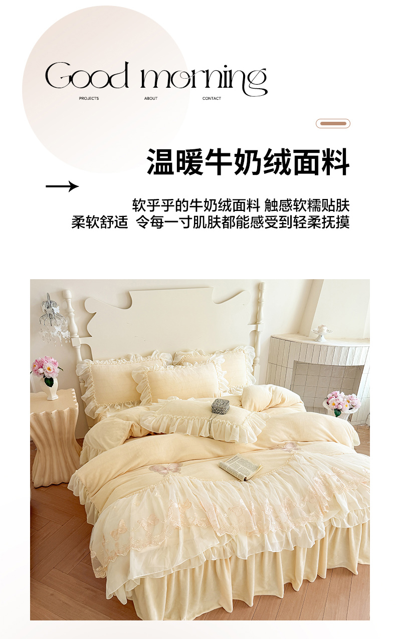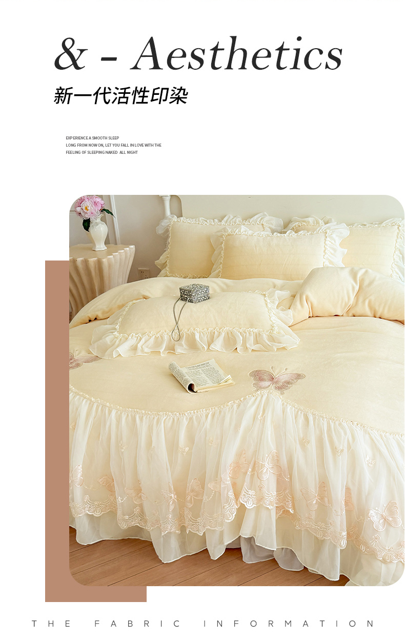 当前位置: 91家纺网 > 商品网购 > 床品套件 > 四件套 > 牛奶绒四件套 > 富盛家纺 2025新款牛奶绒床裙款蕾丝刺绣四件套韩版法式公主风--睡美人系列 睡美人-黄