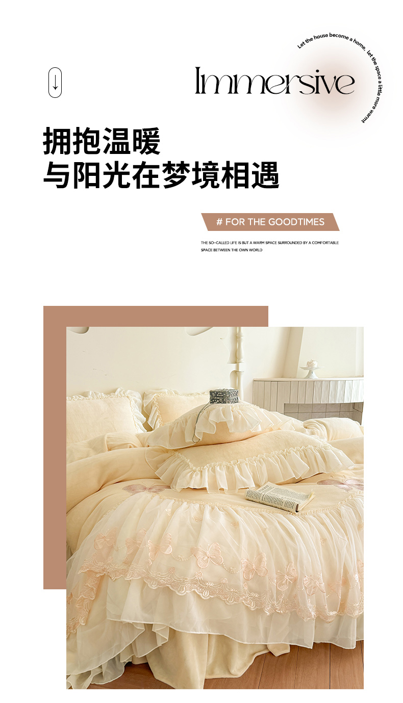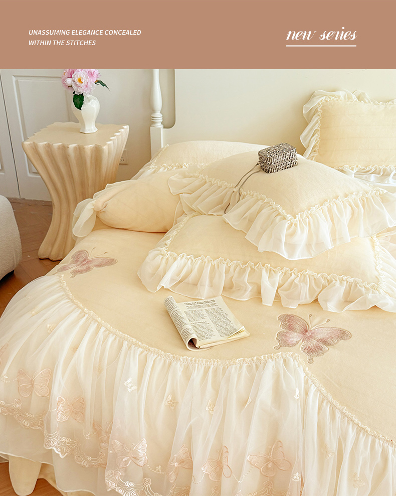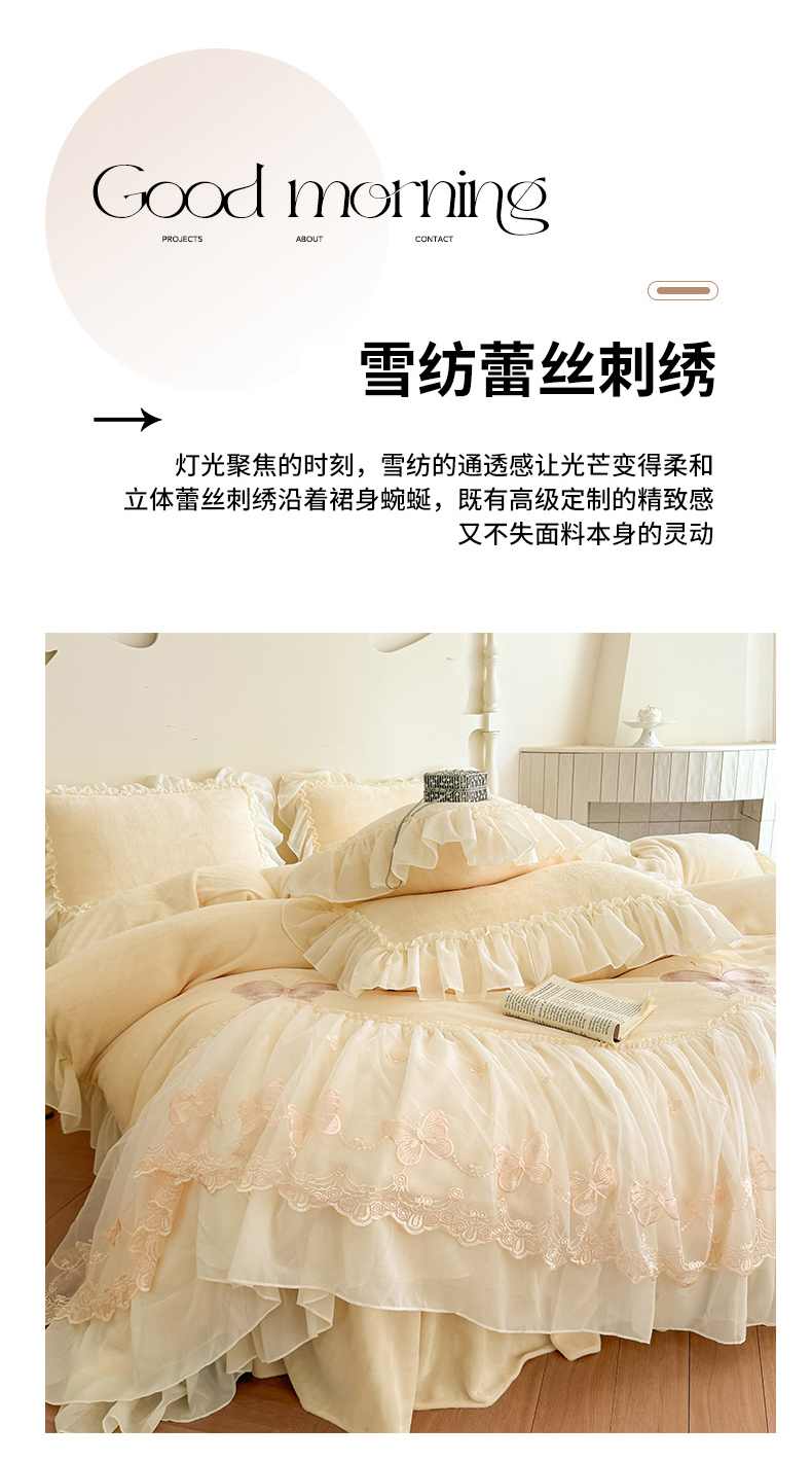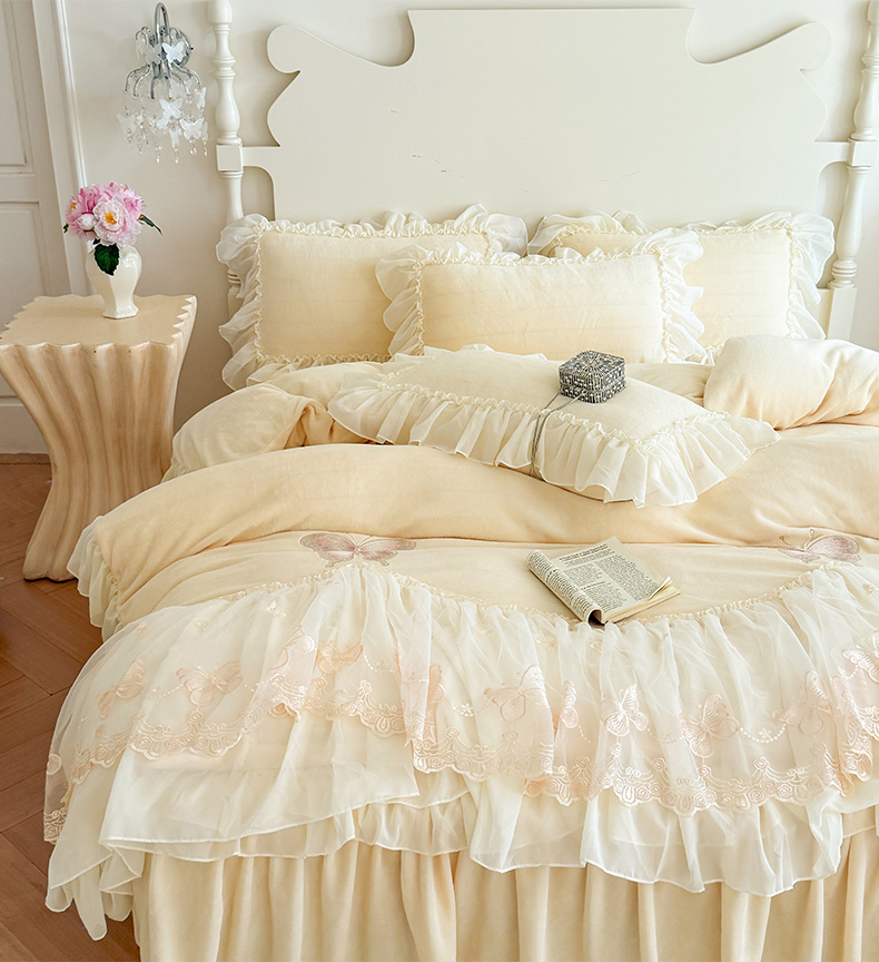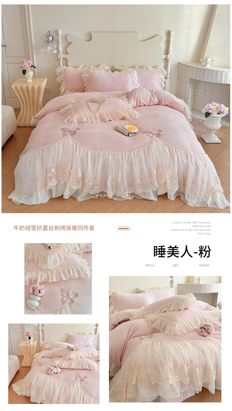 当前位置: 91家纺网 > 商品网购 > 床品套件 > 四件套 > 牛奶绒四件套 > 富盛家纺 2025新款牛奶绒床裙款蕾丝刺绣四件套韩版法式公主风--睡美人系列 睡美人-黄