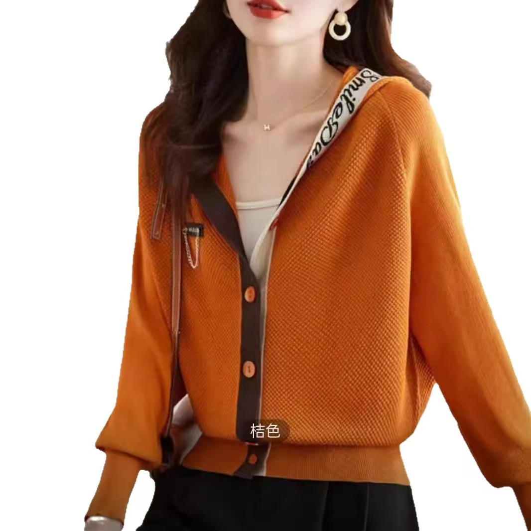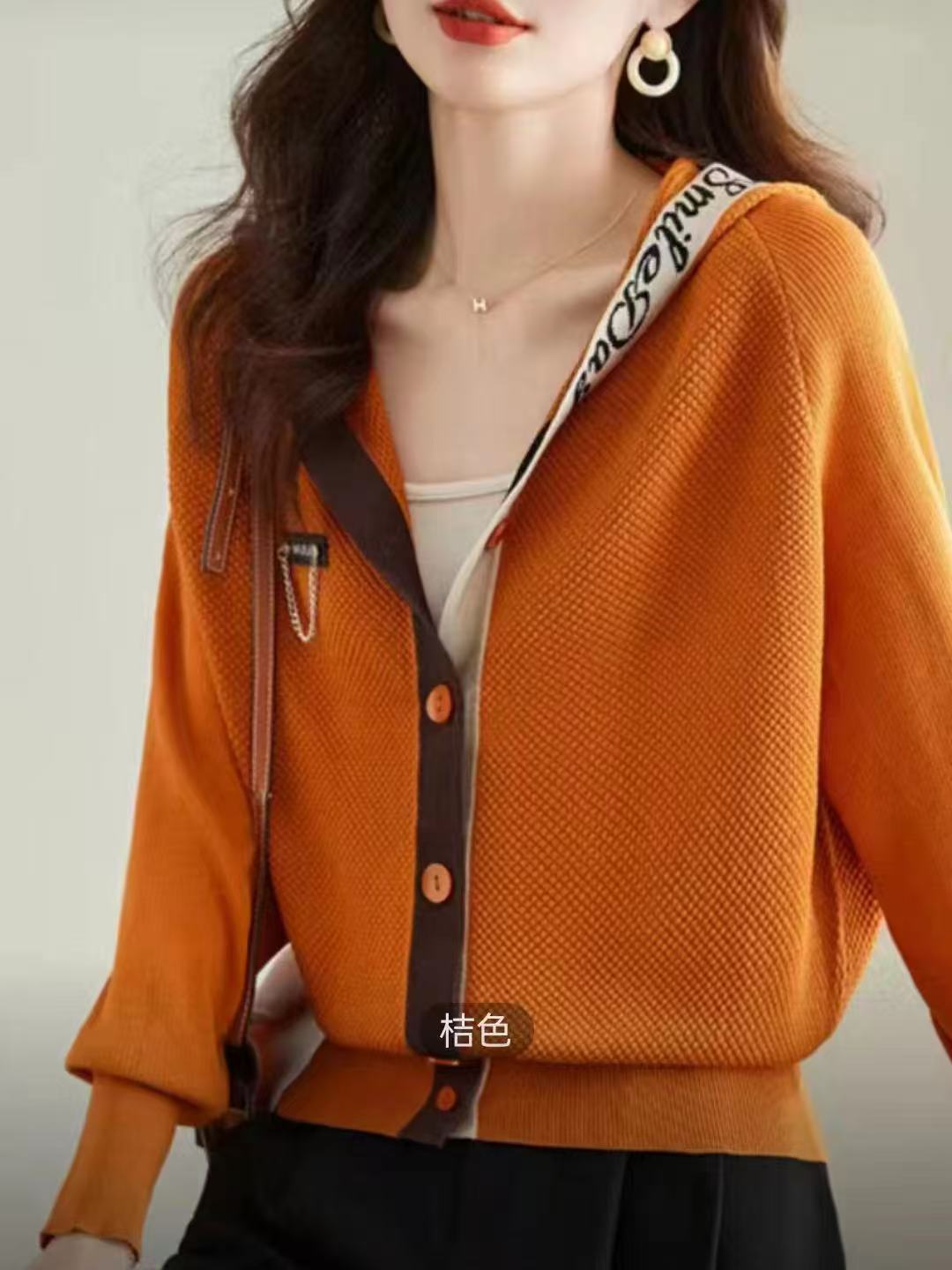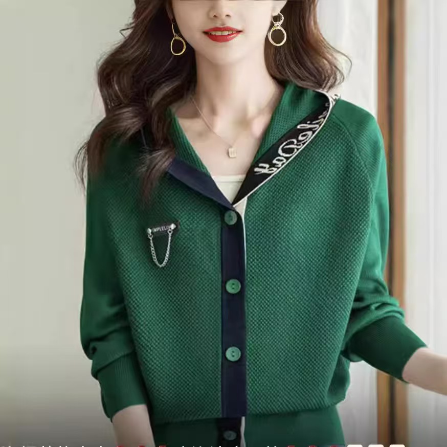 商品名称:(总)洛兰沙家居馆 只代发秋冬外套女2025年新款设计感小众休闲连帽蝙蝠袖针织开衫短款上衣