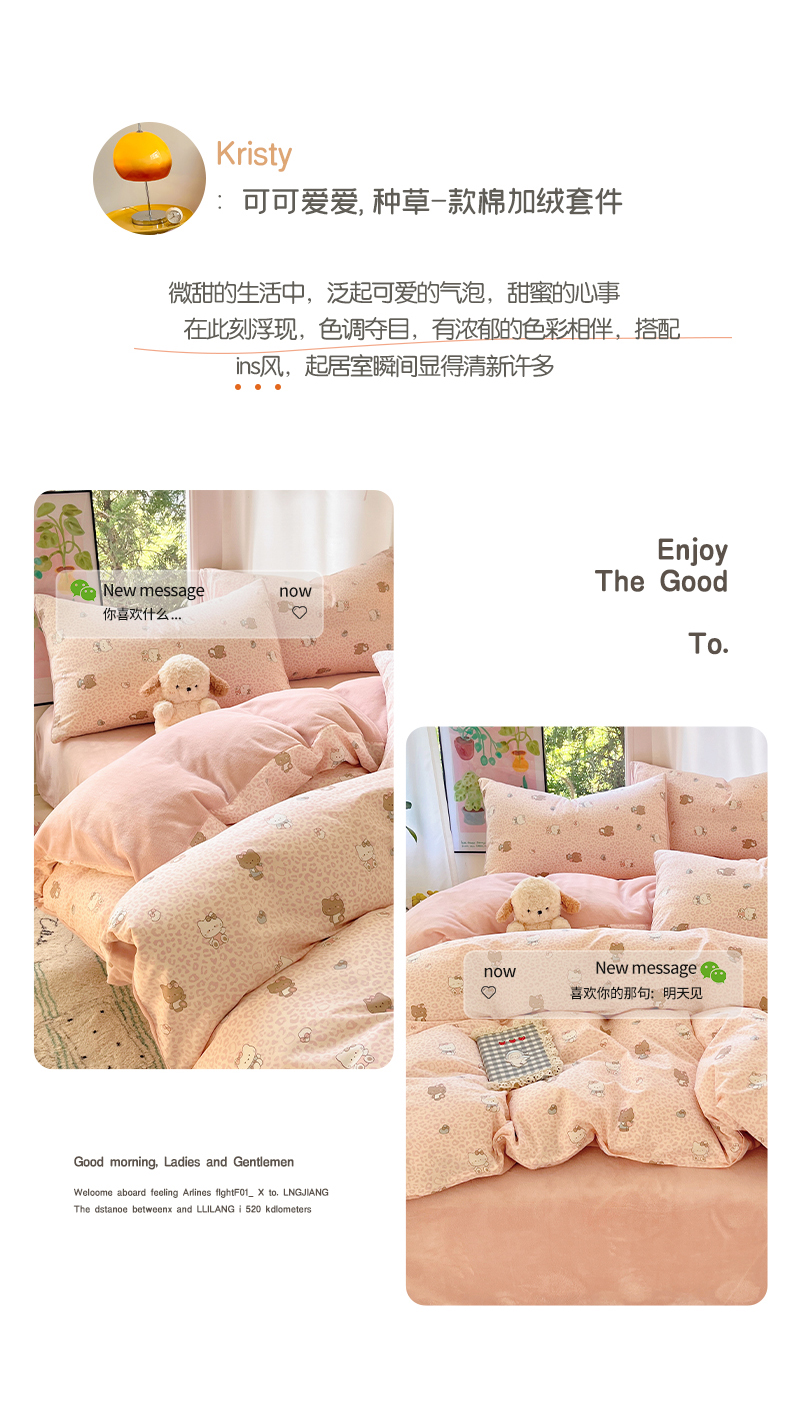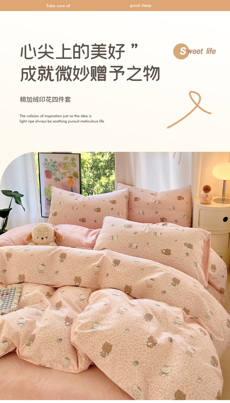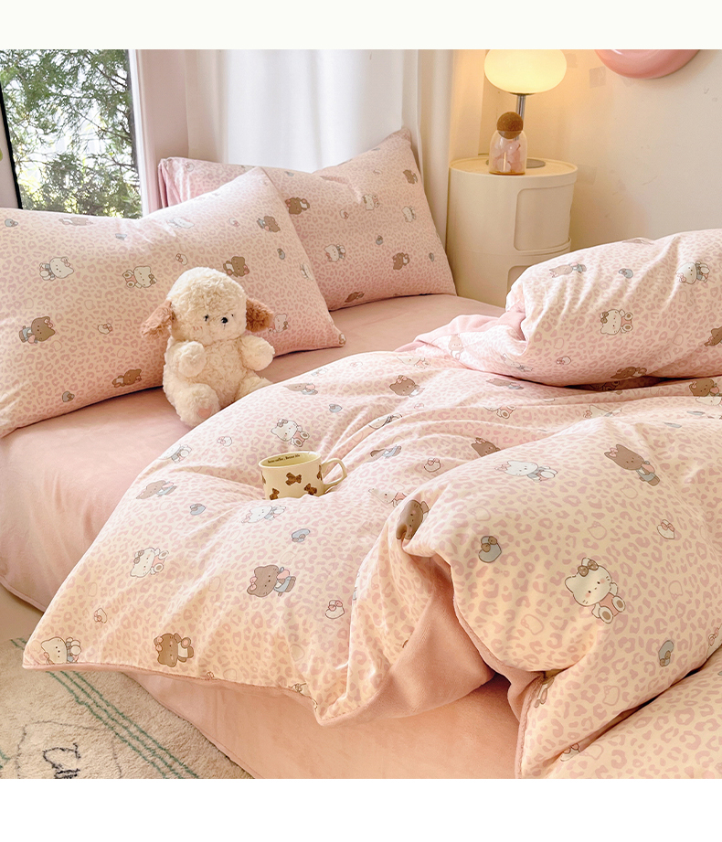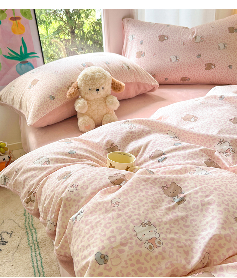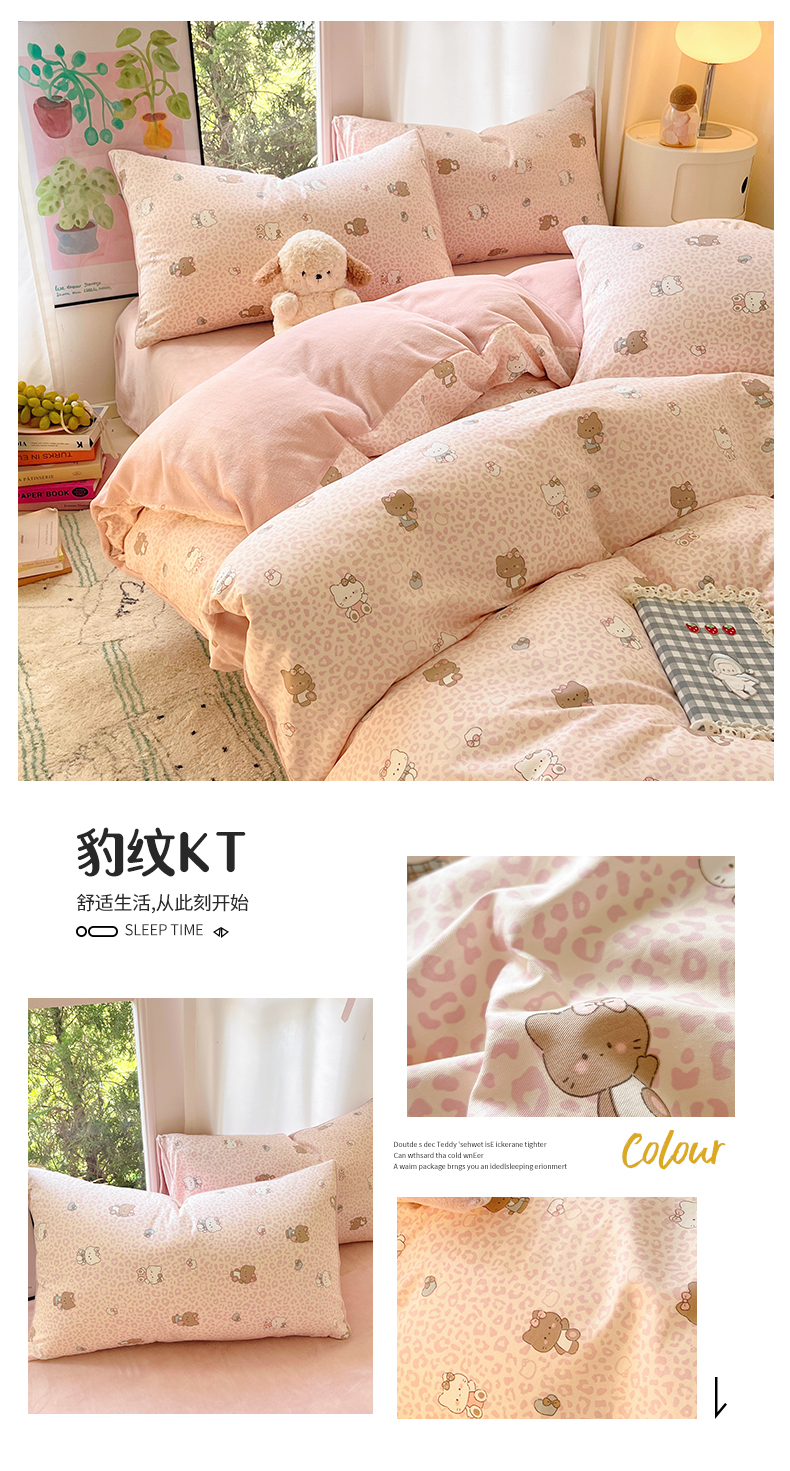 瑞莱 2025新款秋冬网红款棉加绒四件套 豹纹KT