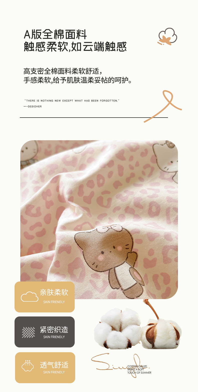 (总)瑞莱 2026新款A类全棉纯棉有氧双层纱四件套,白熊小姐,彩色木马,淡彩花笺,费尔岛小熊,焦糖奶汪-桔,焦糖奶汪-绿,萌星,苹果星星人,小樱桃,樱桃画报