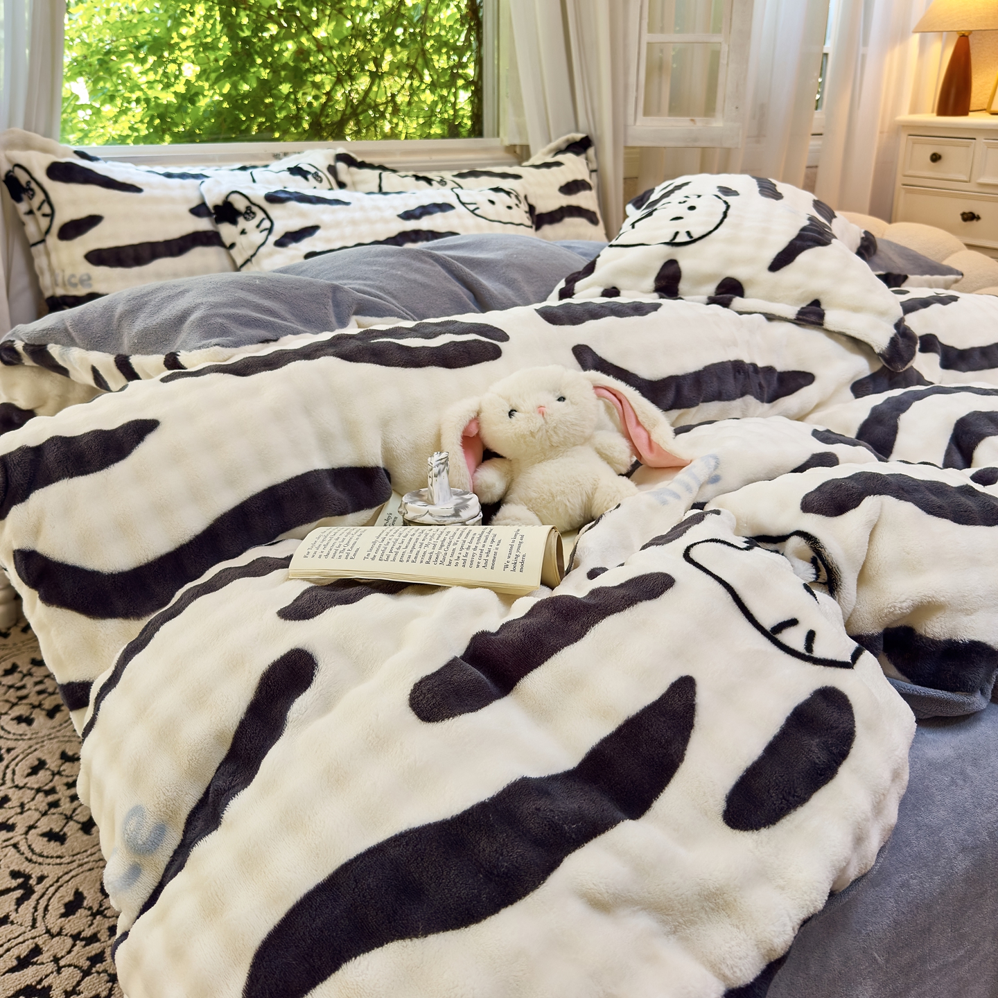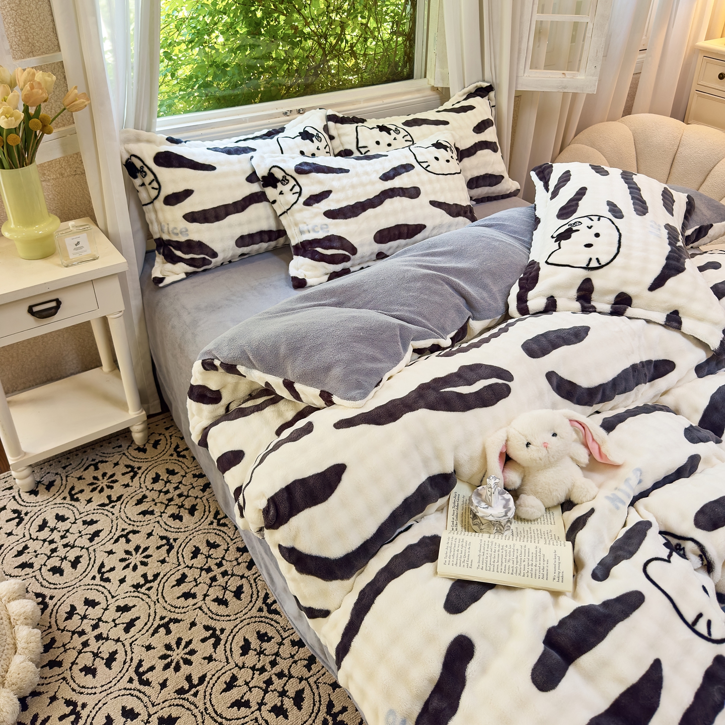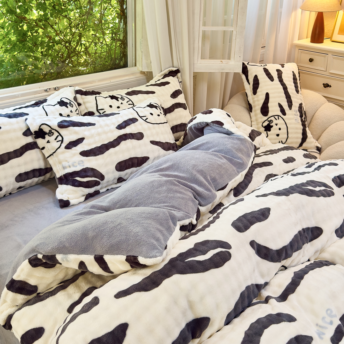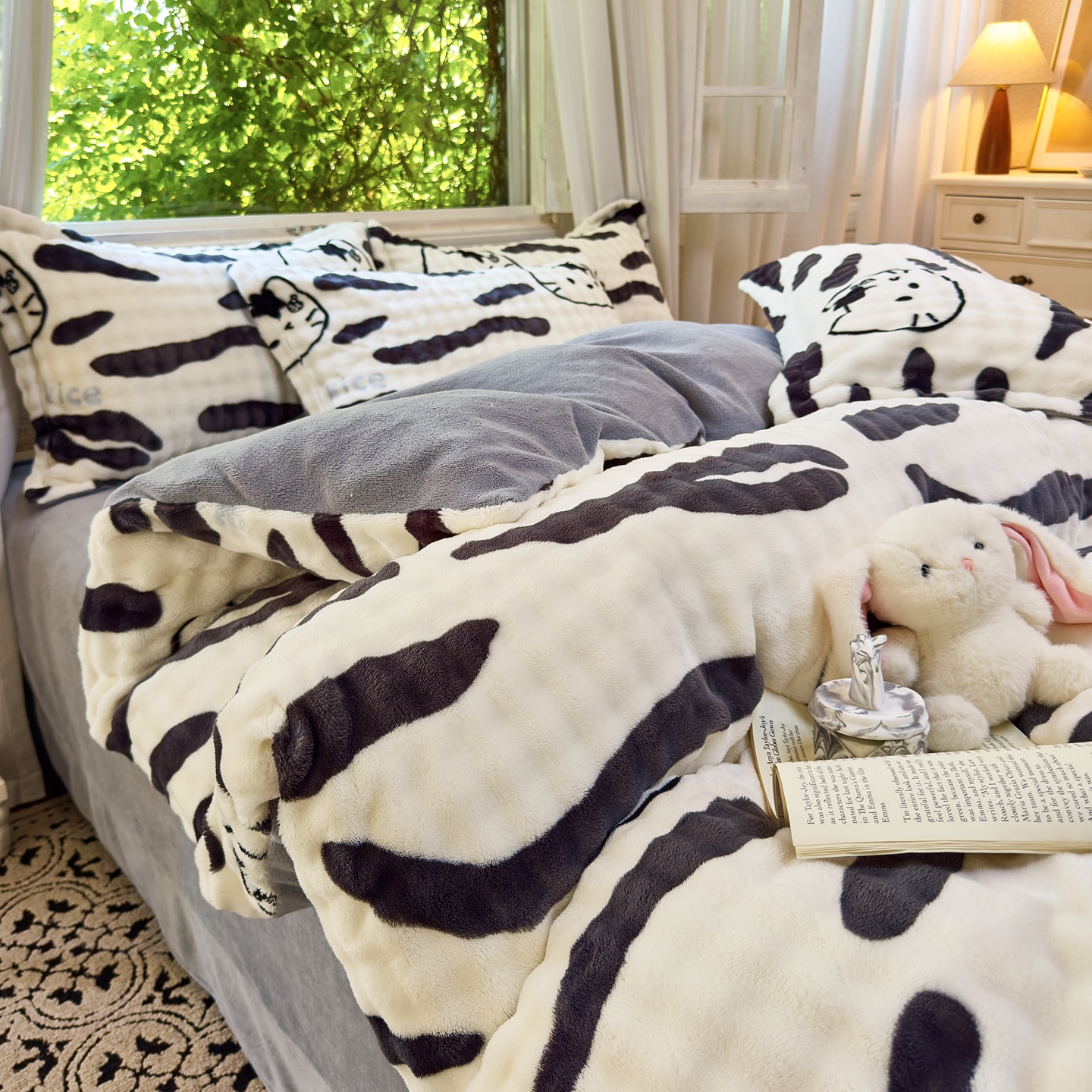 梦莱斯 2025秋冬新款高克重牛奶绒四件套 斑马猫
