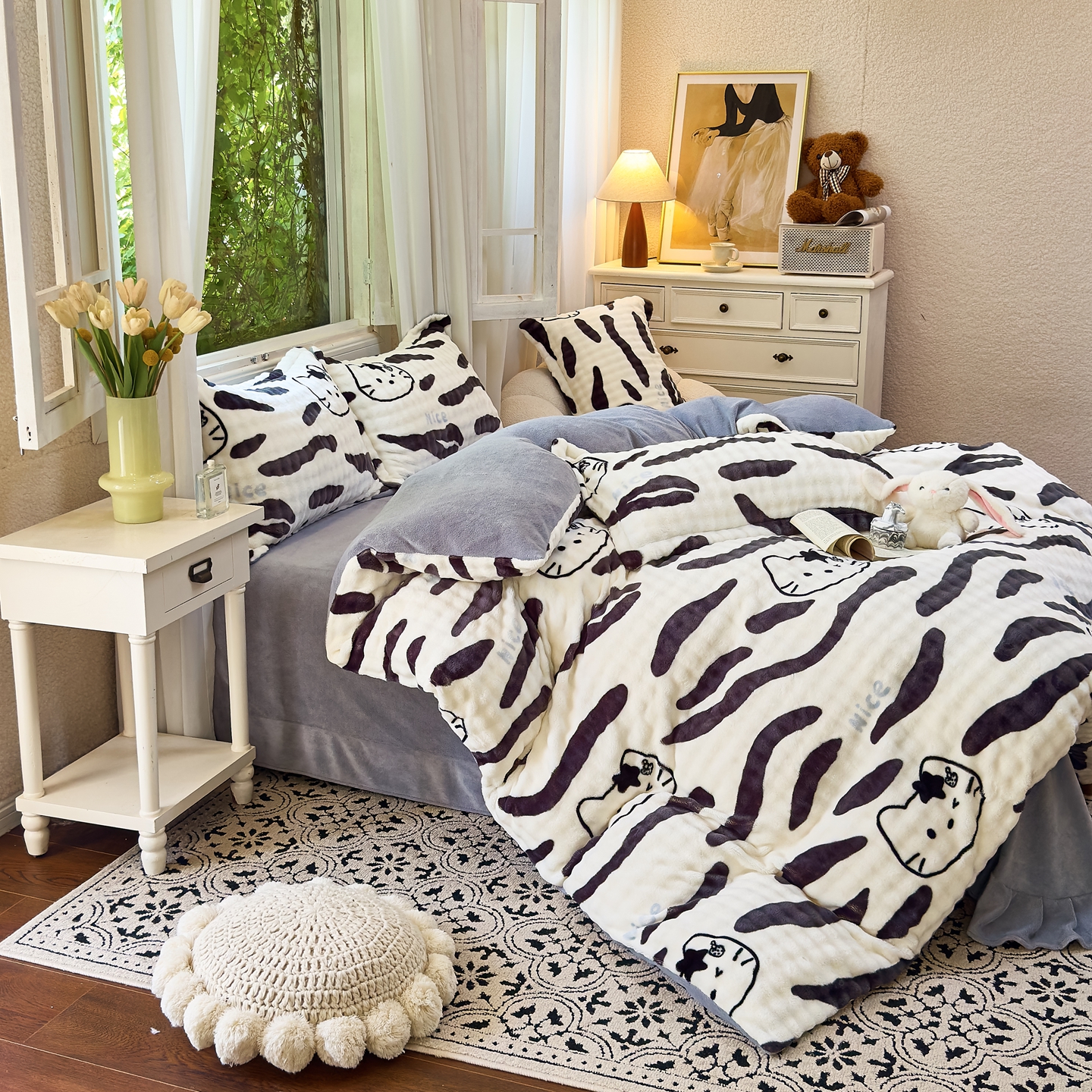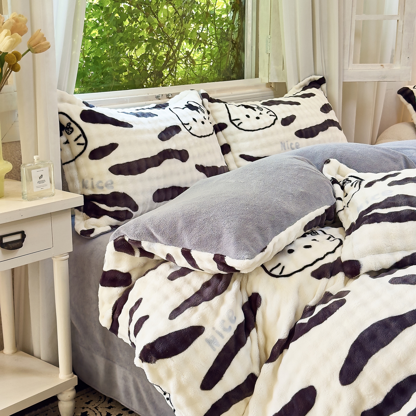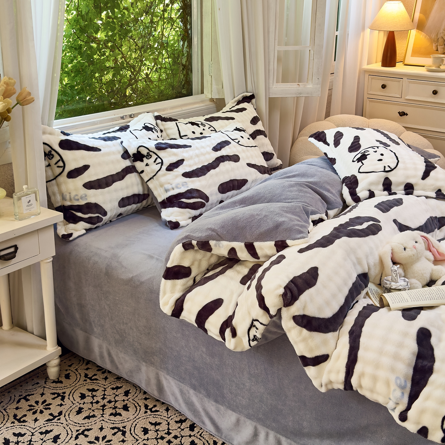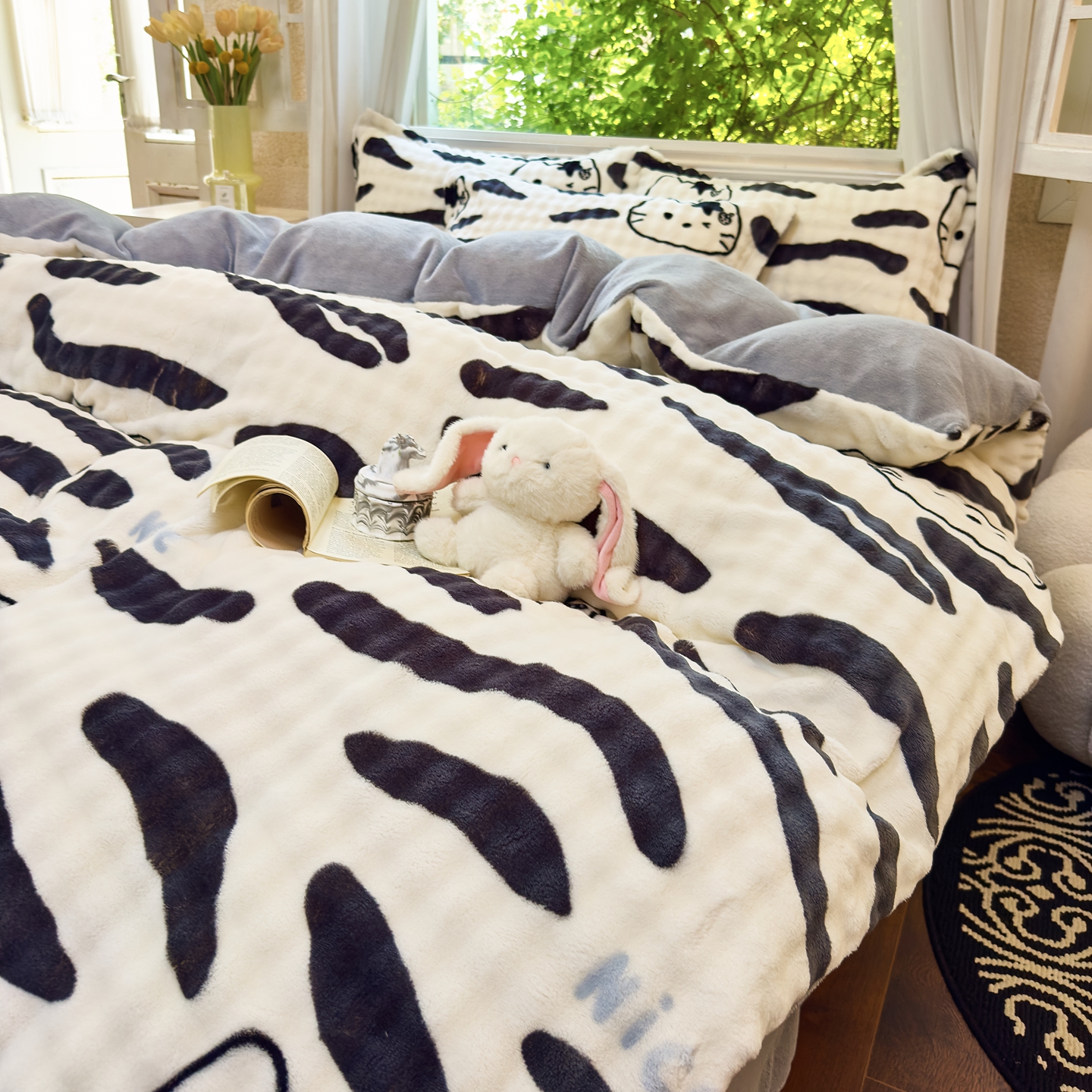 梦莱斯 2025秋冬新款高克重牛奶绒四件套 斑马猫