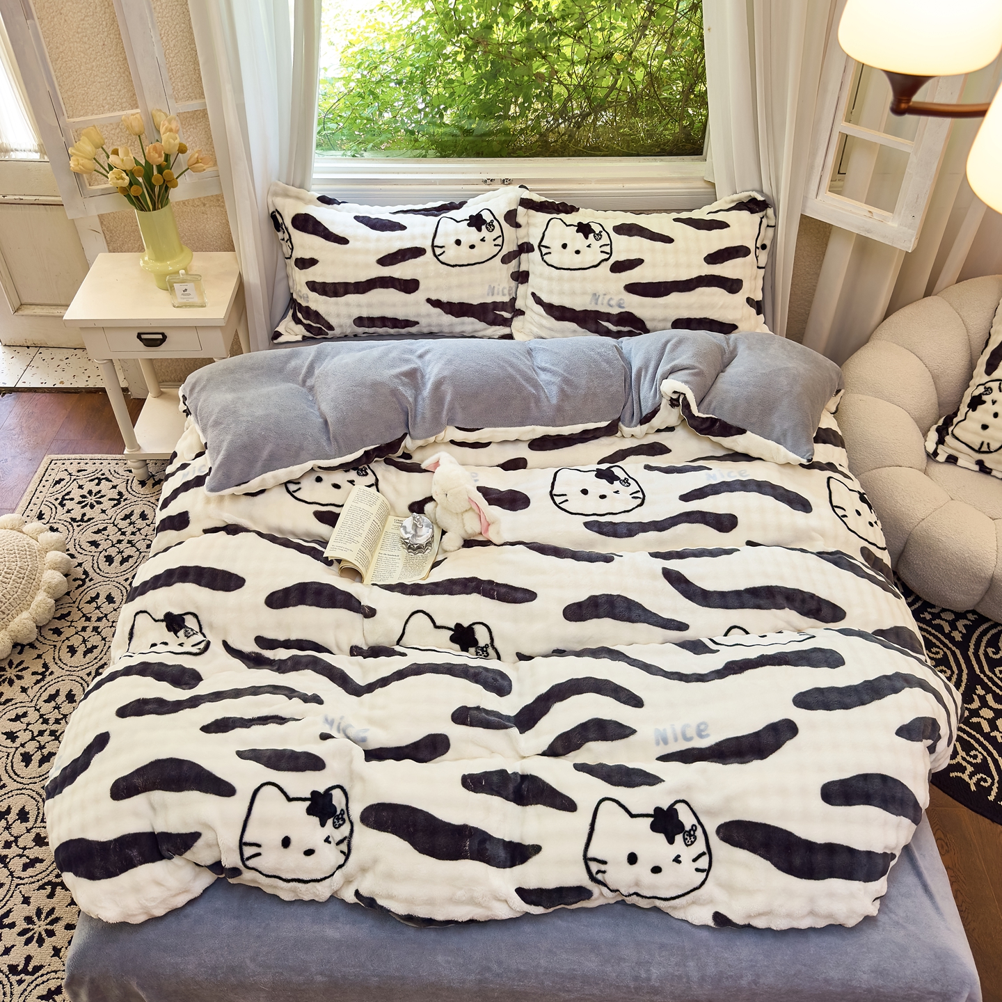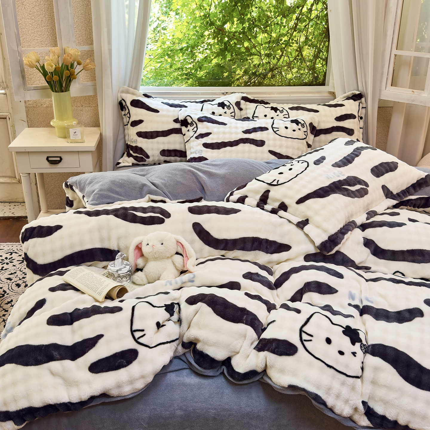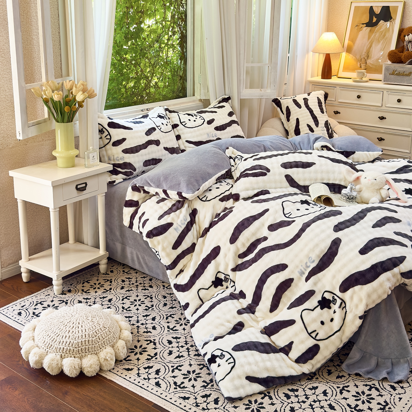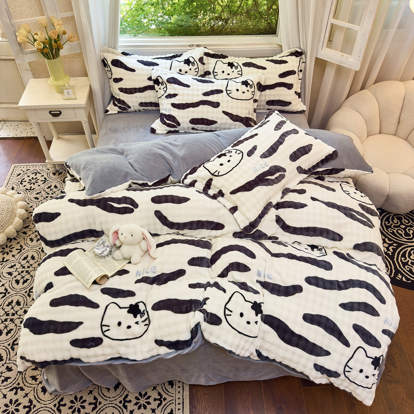 梦莱斯 2025秋冬新款高克重牛奶绒四件套 斑马猫