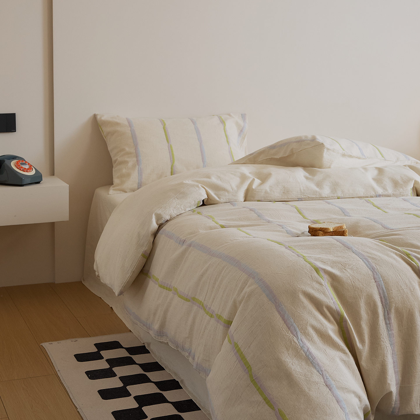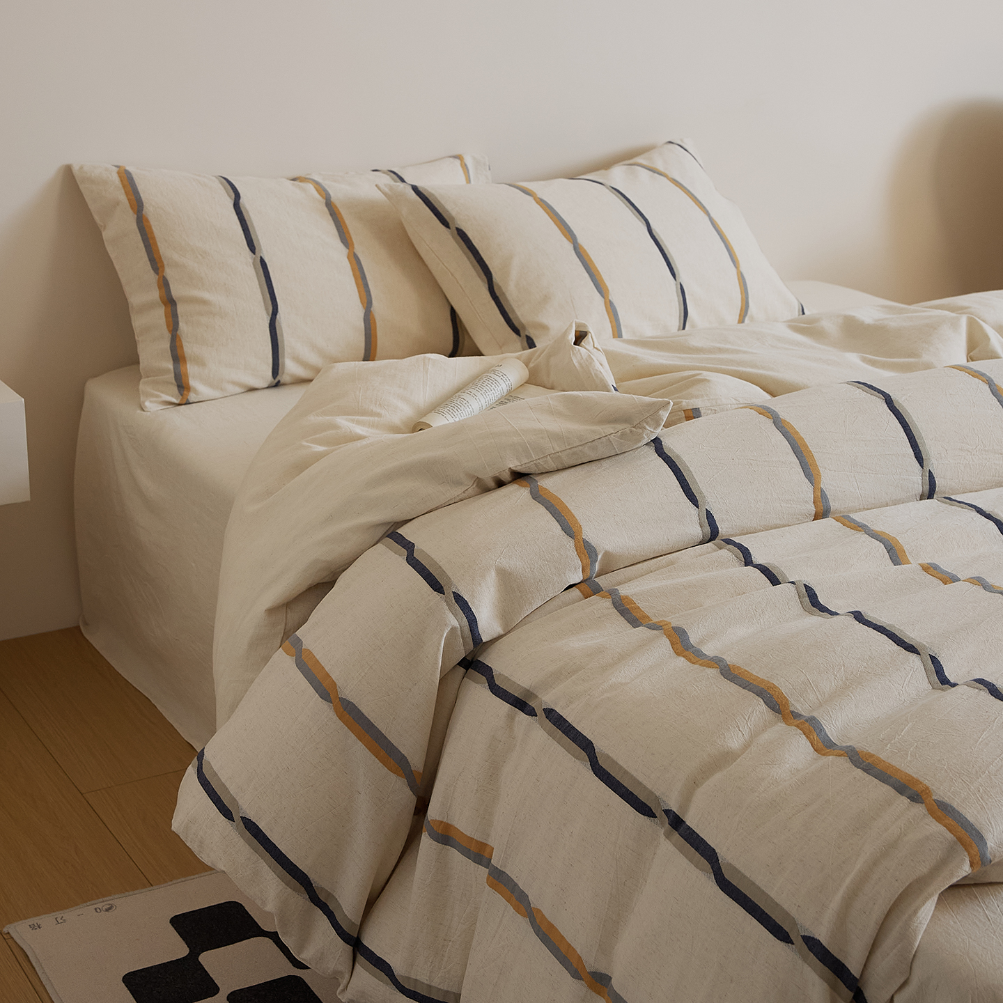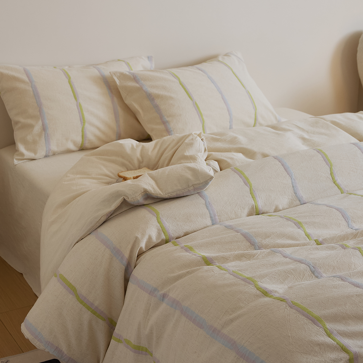 商品名称:原研家居 2025新款棉麻色织条纹系列四件套 棉麻粉条