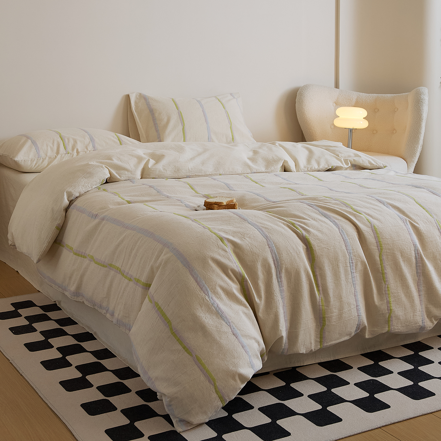 (总)原研家居 2025新款棉麻色织条纹系列四件套,棉麻黄条,棉麻绿条,棉麻粉条