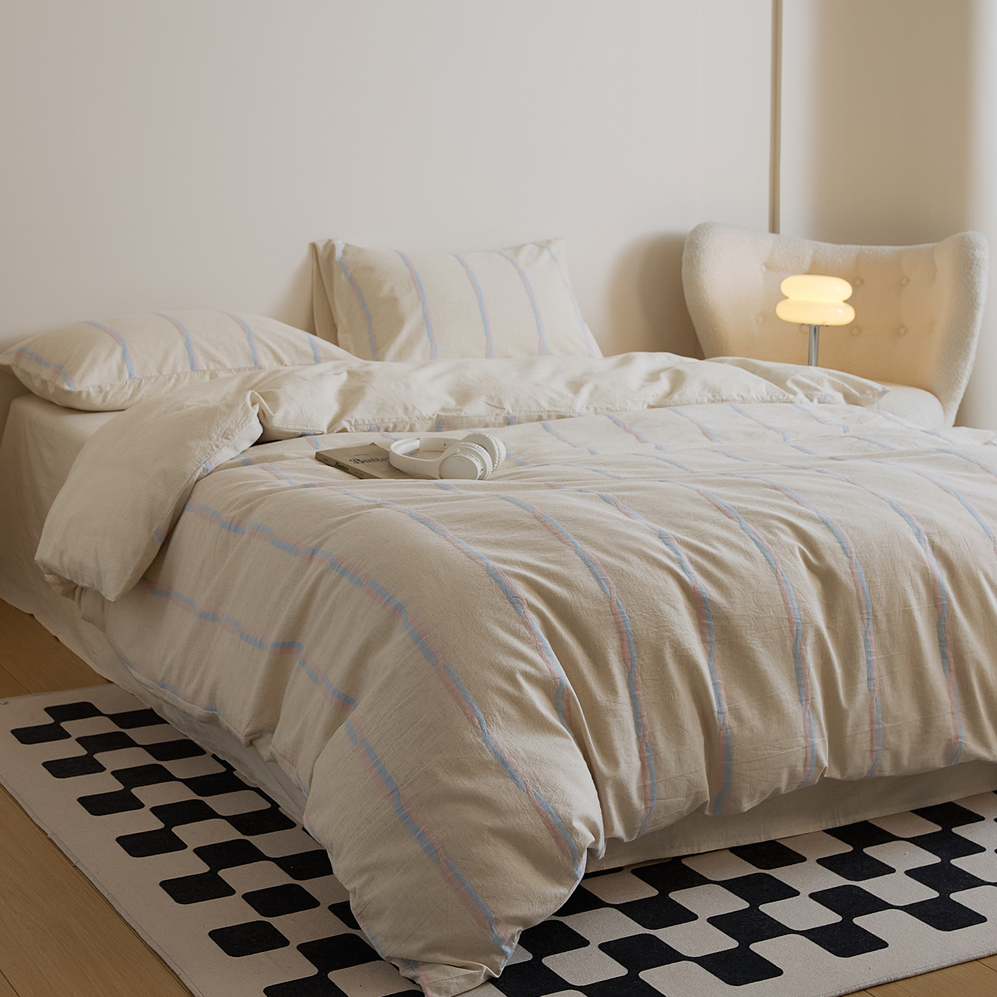 原研家居 2025新款棉麻色织条纹系列四件套 棉麻粉条