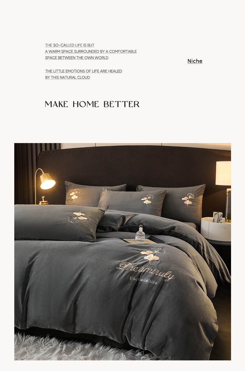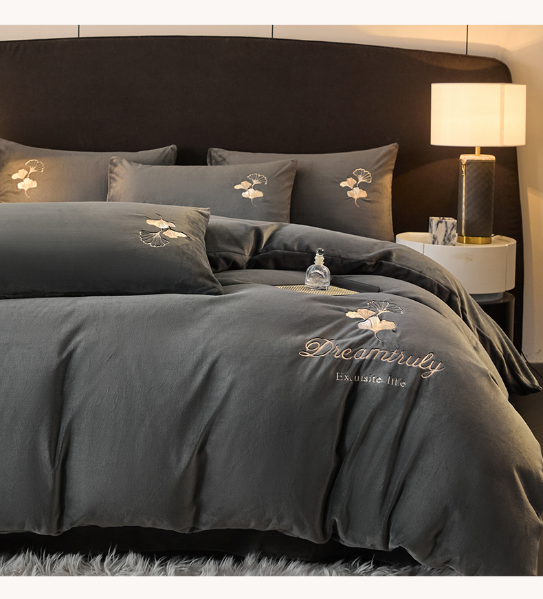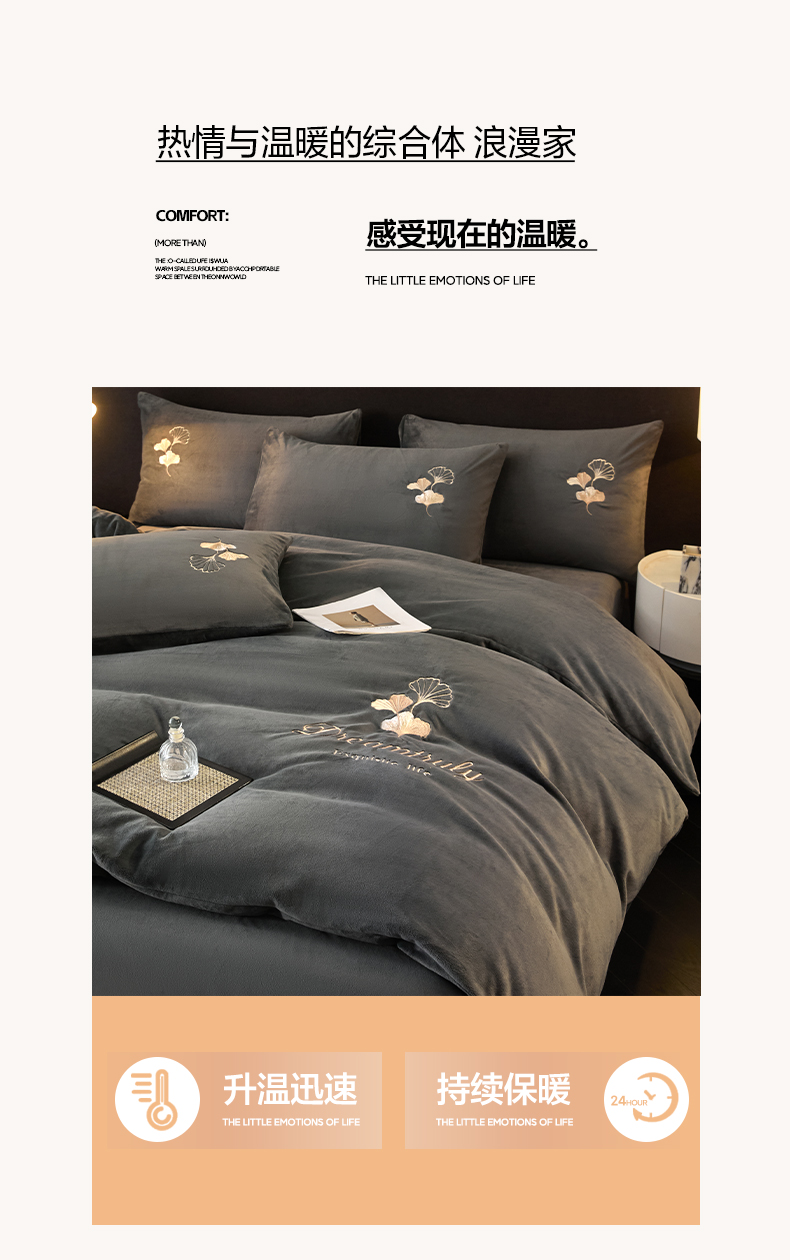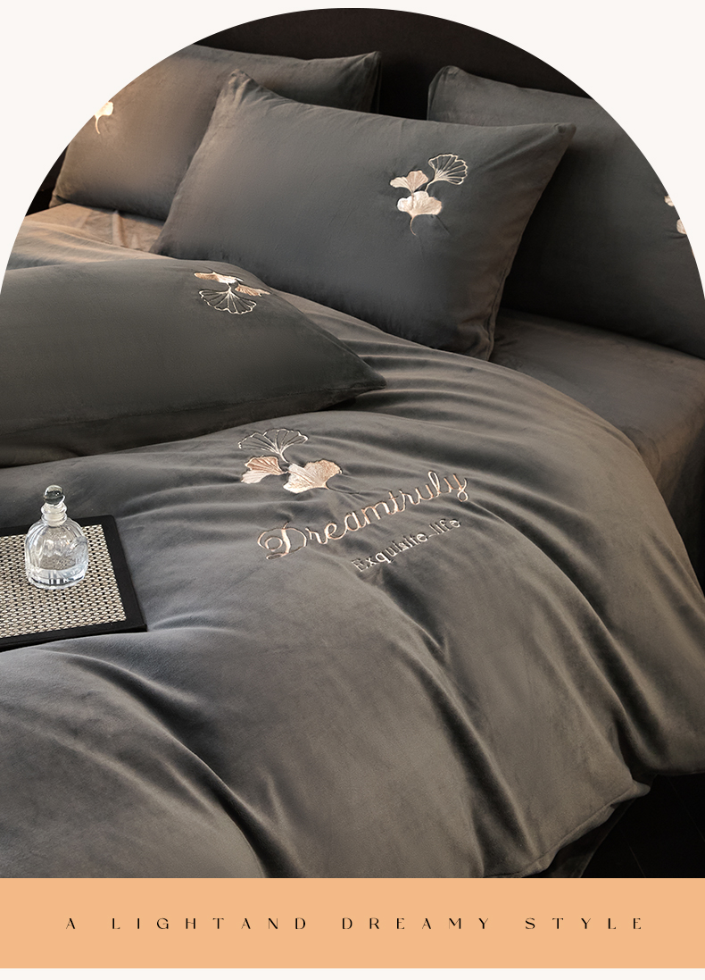 当前位置: 91家纺网 > 商品网购 > 床品套件 > 四件套 > 水晶绒四件套 > 如一 2025新款水晶绒刺绣四件套 银杏-高级灰