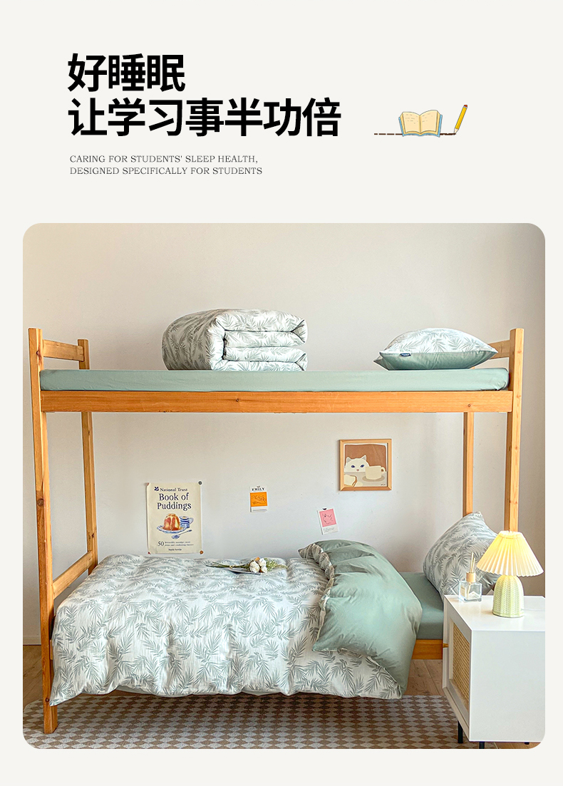商品名称:宜代光年 2025新款60S水洗棉提花学生季三件套 繁花-粉