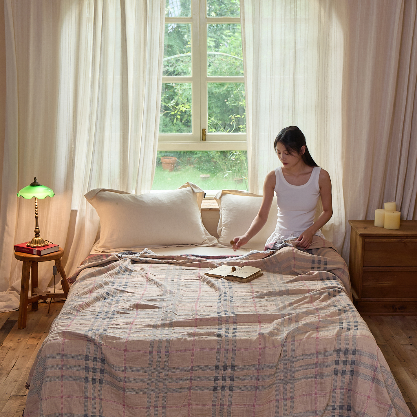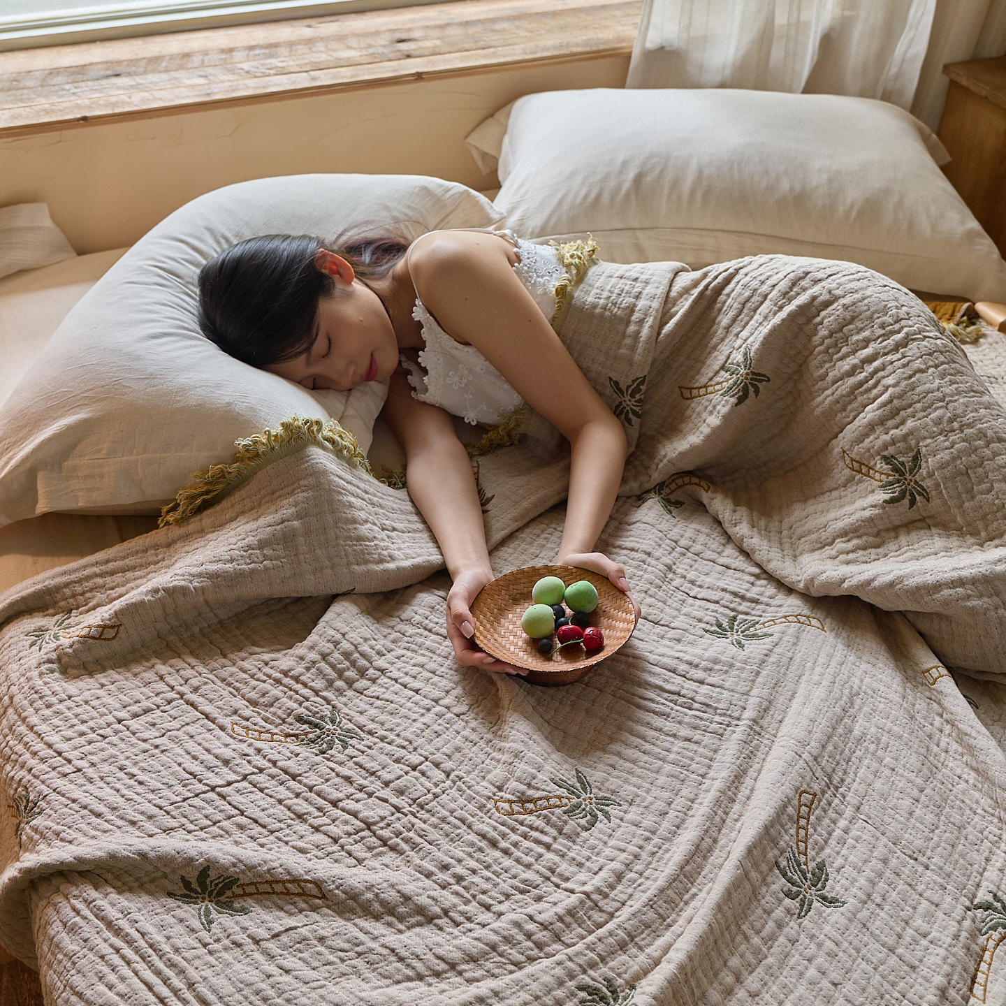 (总)沐瑟家纺 2025新款简约风多功能纱布盖毯纱布毯子毛巾被床盖沙发巾单毯枕巾枕套三件套,H本色,H橙色,H咖色,大马士革本色
