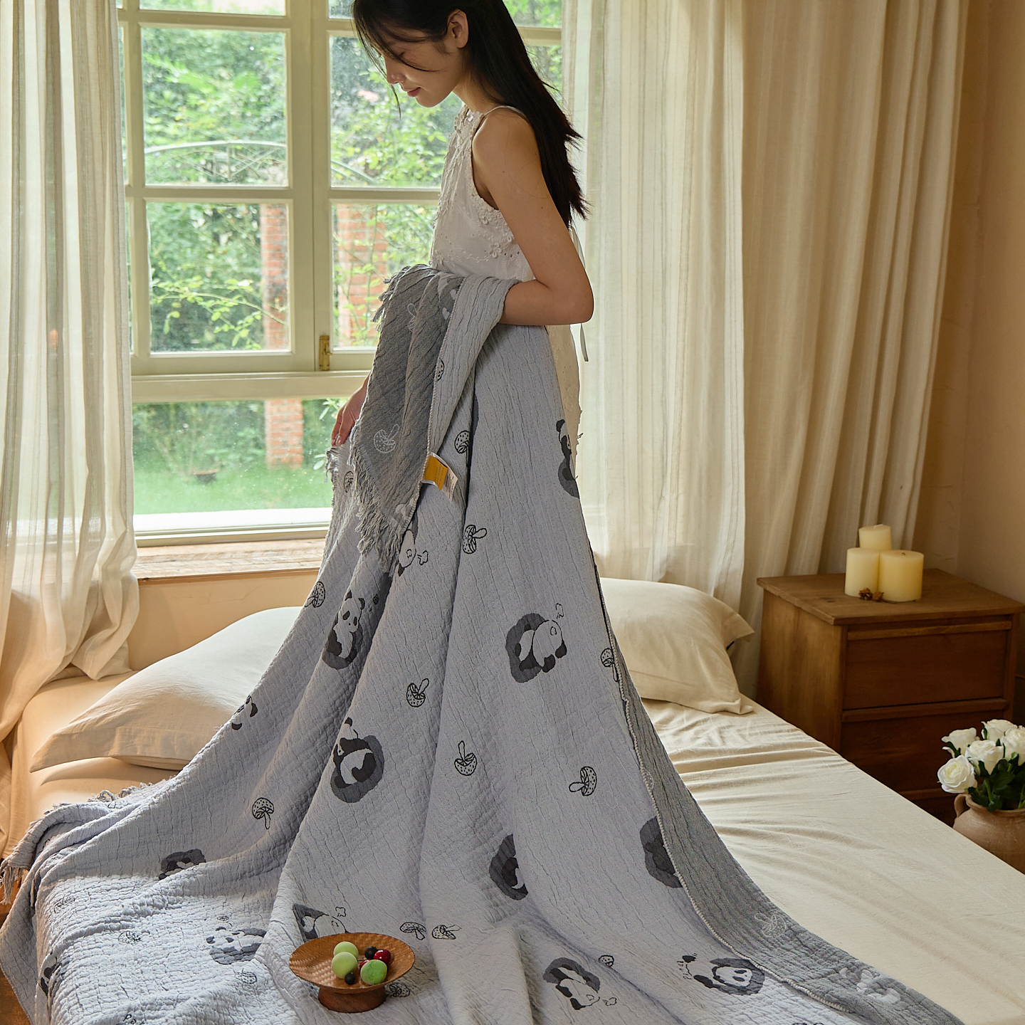 沐瑟家纺 2025新款亲肤全棉纱布盖毯毯子 小熊猫