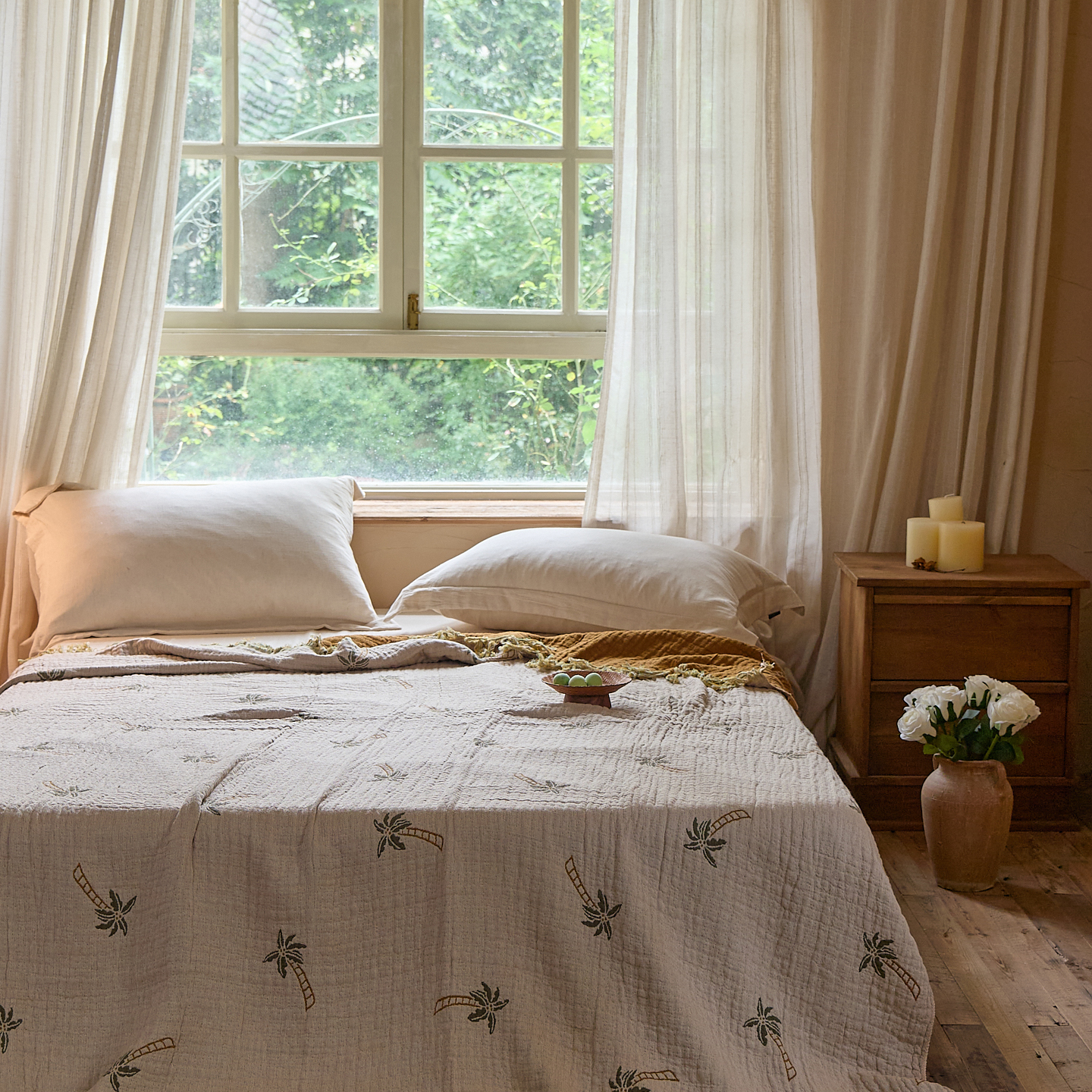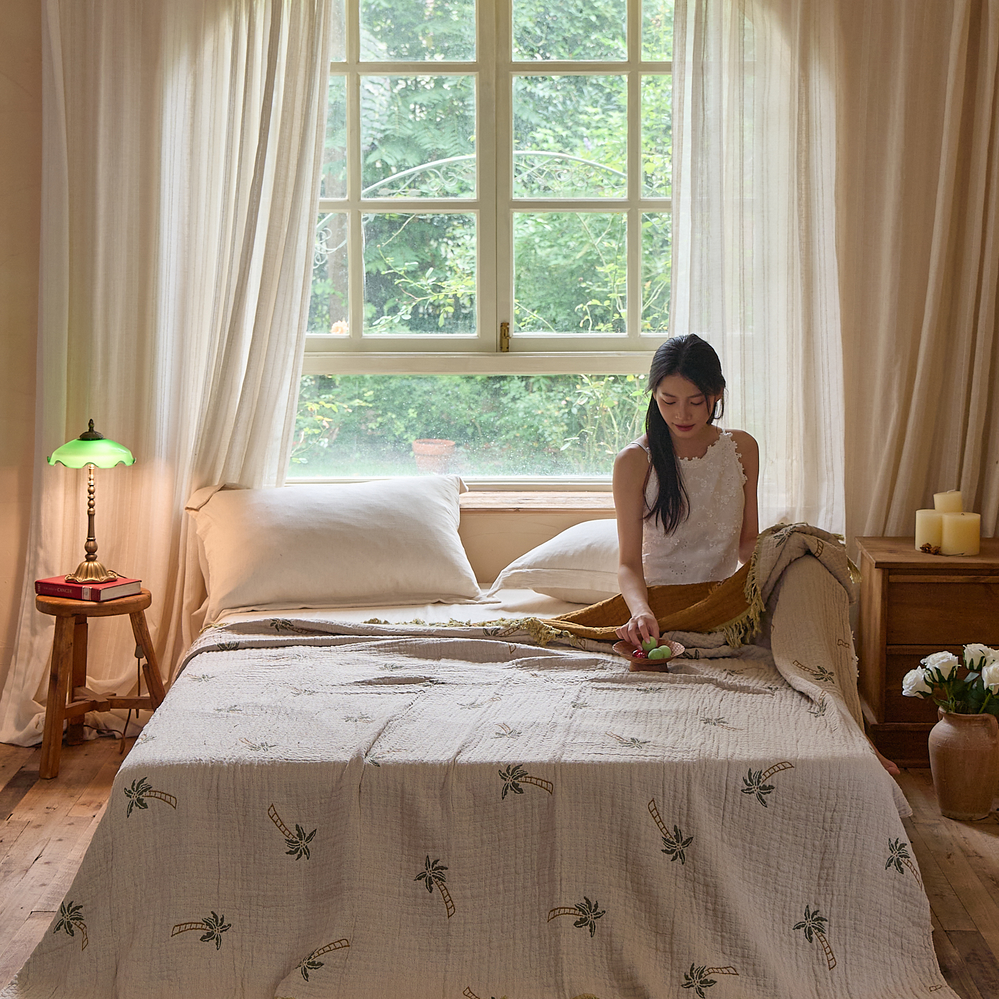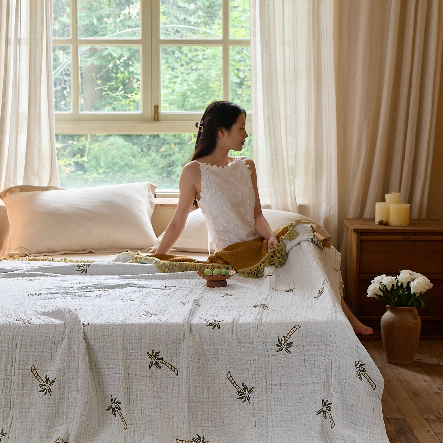 (总)沐瑟家纺 2025新款全棉纱布细纱布大床盖毯子床盖三件套LV系列,LV咖色,春意浓,玫瑰之约,小天鹅-绿,绽放-红色,绽放-姜黄