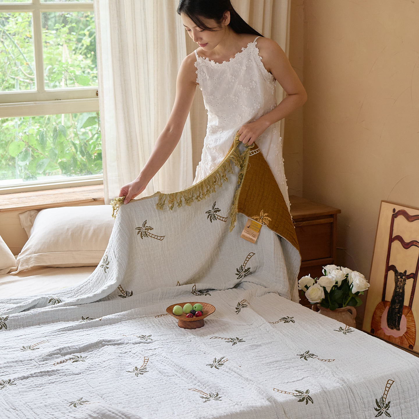 (总)沐瑟家纺 2025新款亲肤柔软全棉纱布中国风盖毯毯子,百花集,翠影鸟-蓝色,花想容,花鸟韵,蝶语-绿,蝶语-淡粉,花蝶-米,比翼鸟,墨葵,绮梦花