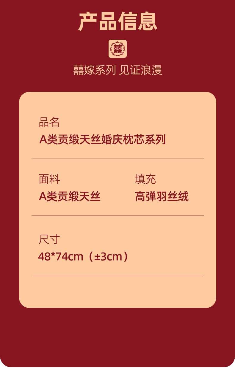 当前位置: 91家纺网 > 商品网购 > 枕头/枕芯/保健枕/颈椎枕 > 枕头枕芯 > 织布人 2025新款枕芯轻奢A类贡缎天丝刺绣婚庆枕头大红结婚专用枕芯 A类贡缎天丝枕-比翼喜恋