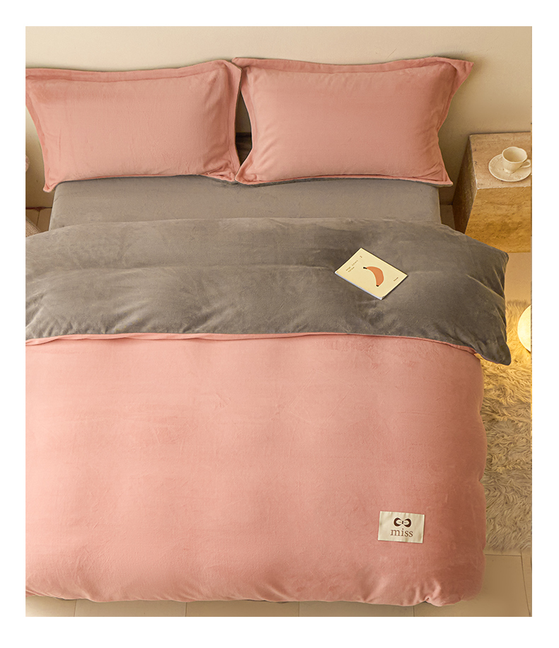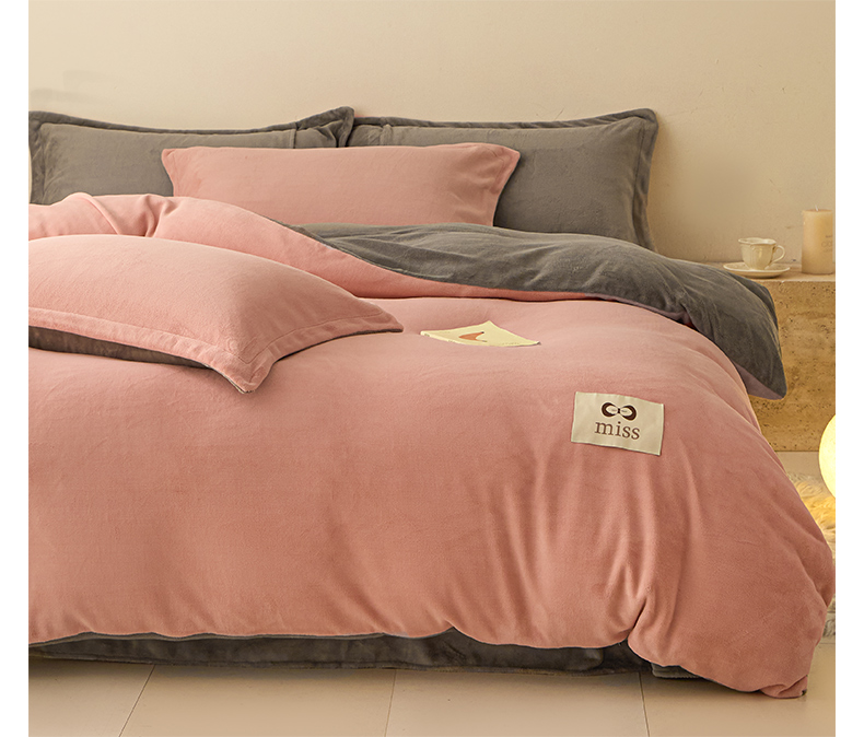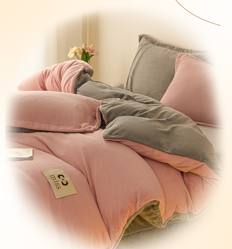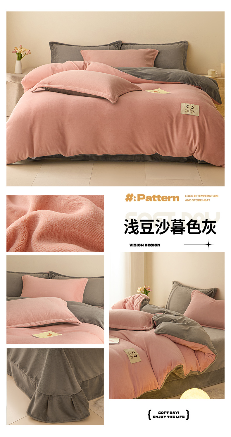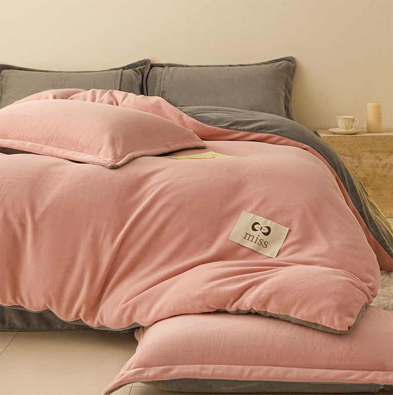 鑫琪莱家纺 2025新款高克重牛奶绒双拼四件套 浅豆沙暮色灰