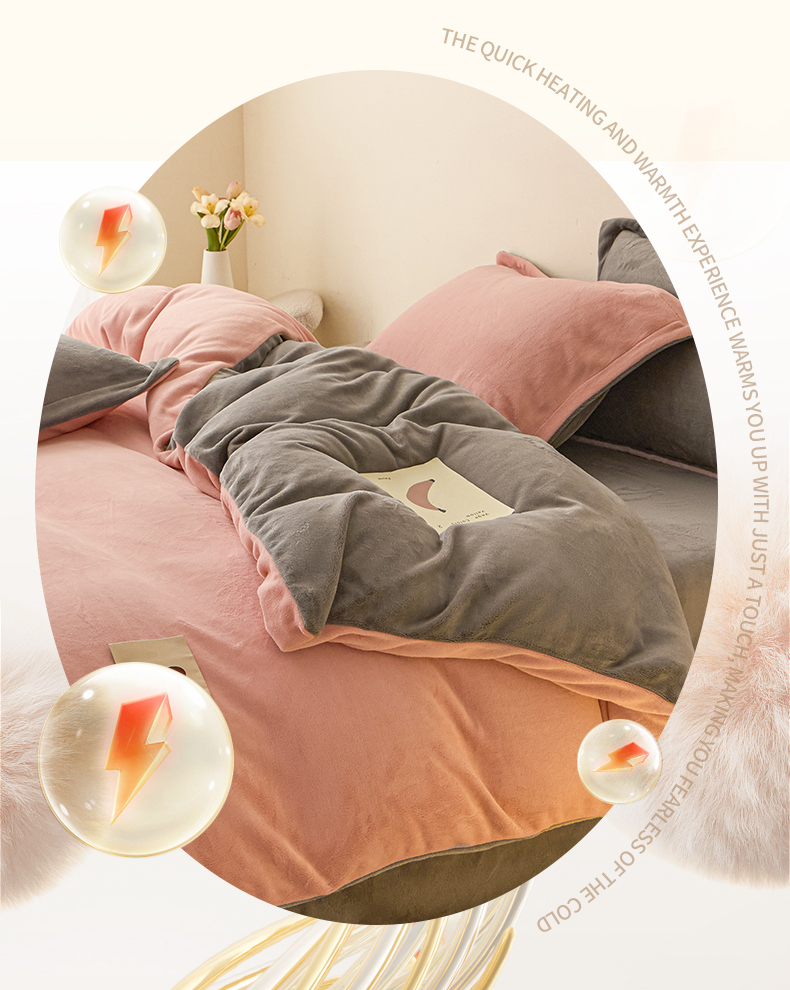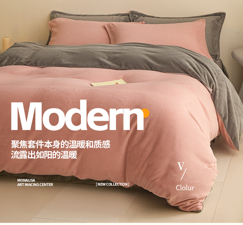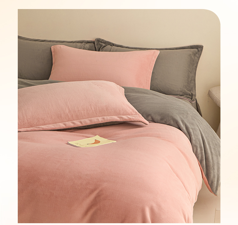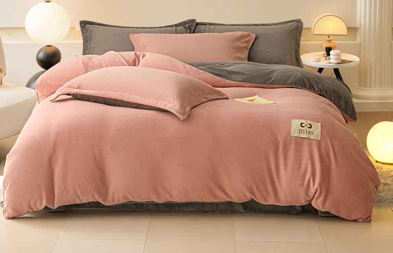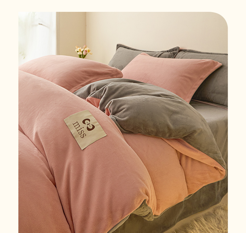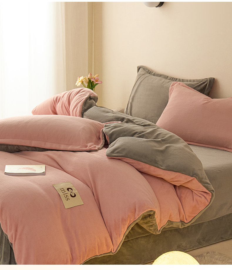 鑫琪莱家纺 2025新款高克重牛奶绒双拼四件套 浅豆沙暮色灰