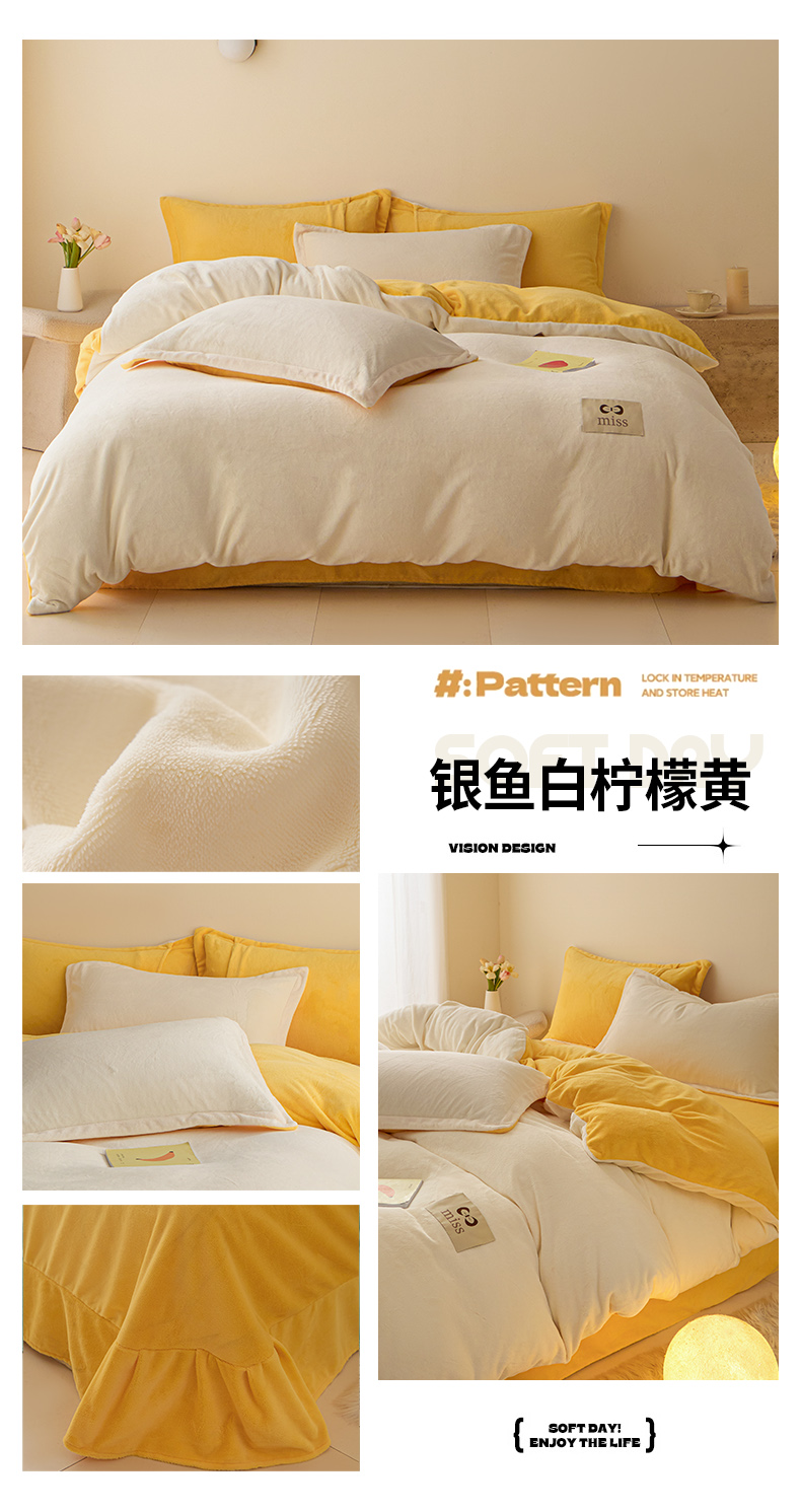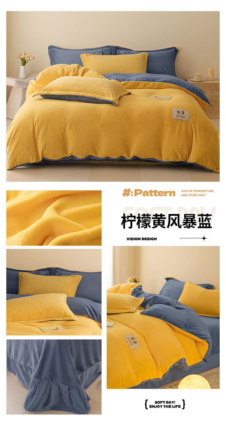 (总)鑫琪莱家纺 2025新款高克重牛奶绒双拼四件套,浅豆沙暮色灰,风暴蓝奶咖,银鱼白柠檬黄,银鱼白嫩荷绿,银鱼白丁香紫,柠檬黄风暴蓝,杏仁奶咖,风暴蓝暮色灰