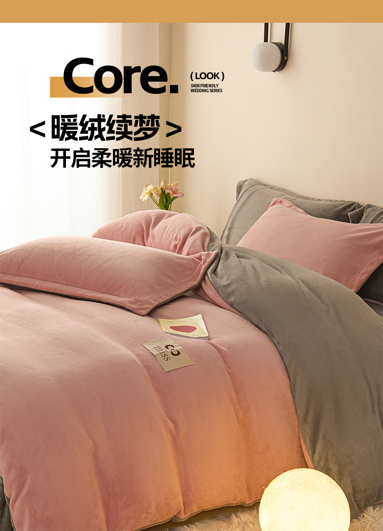 商品名称:鑫琪莱家纺 2025新款高克重牛奶绒双拼四件套 浅豆沙暮色灰