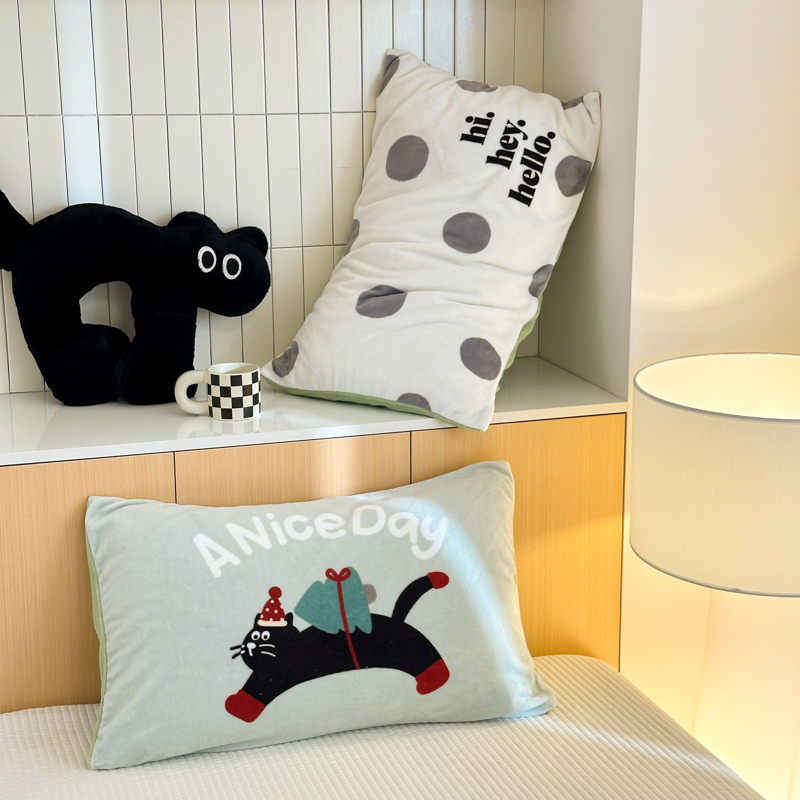 寐居家纺 2025新款卡通印花大阪单枕套 圣诞猫