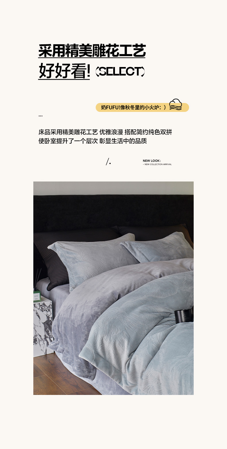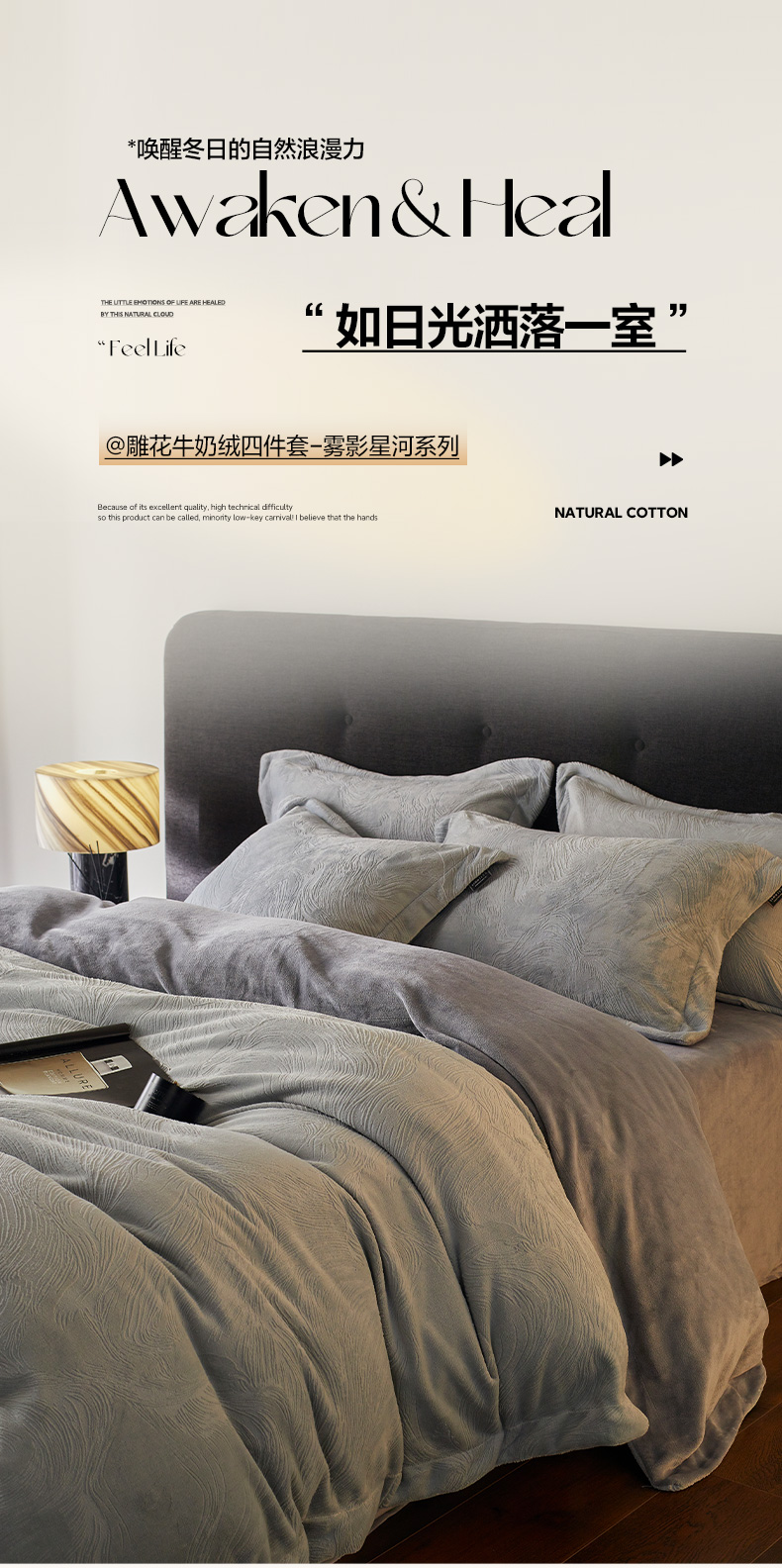 当前位置: 91家纺网 > 商品网购 > 床品套件 > 四件套 > 牛奶绒四件套 > 三味舒屋 2025新款铂金暖绒全消光轻奢雕花牛奶绒四件套雾影星河 雾影星河灰