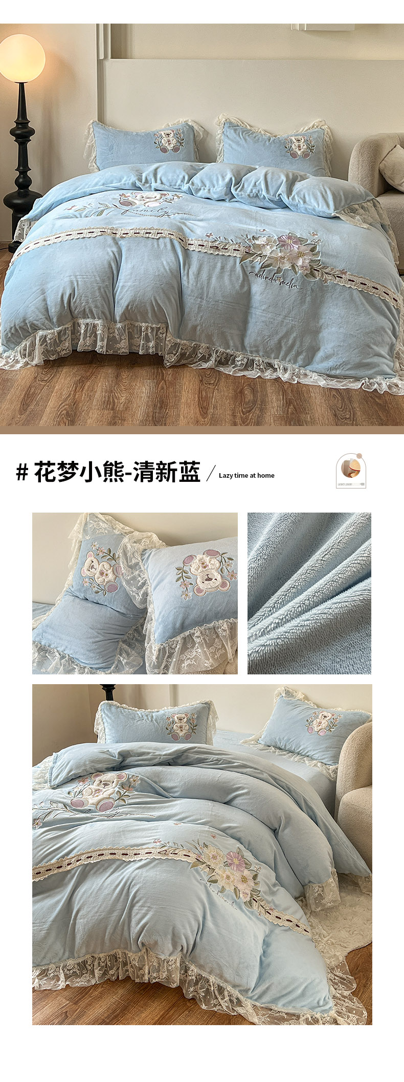 (总)新印象 2025新款全消光牛奶绒绣花活性印染四件套花梦小熊,花梦小熊-清新蓝,花梦小熊-少女粉,花梦小熊-香芋紫
