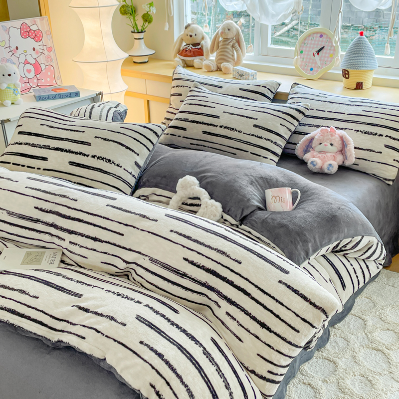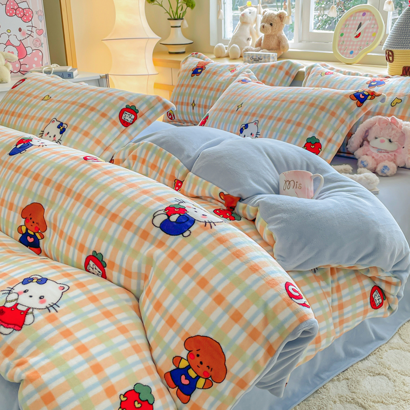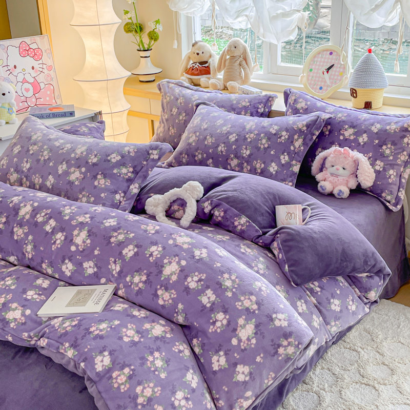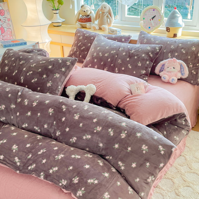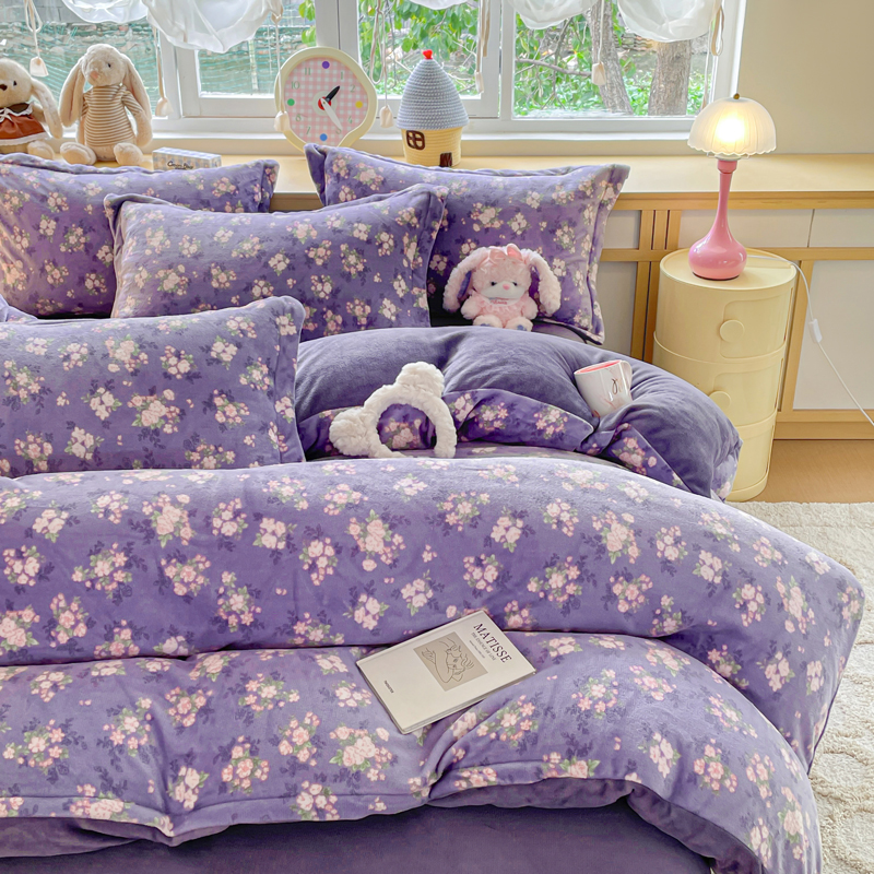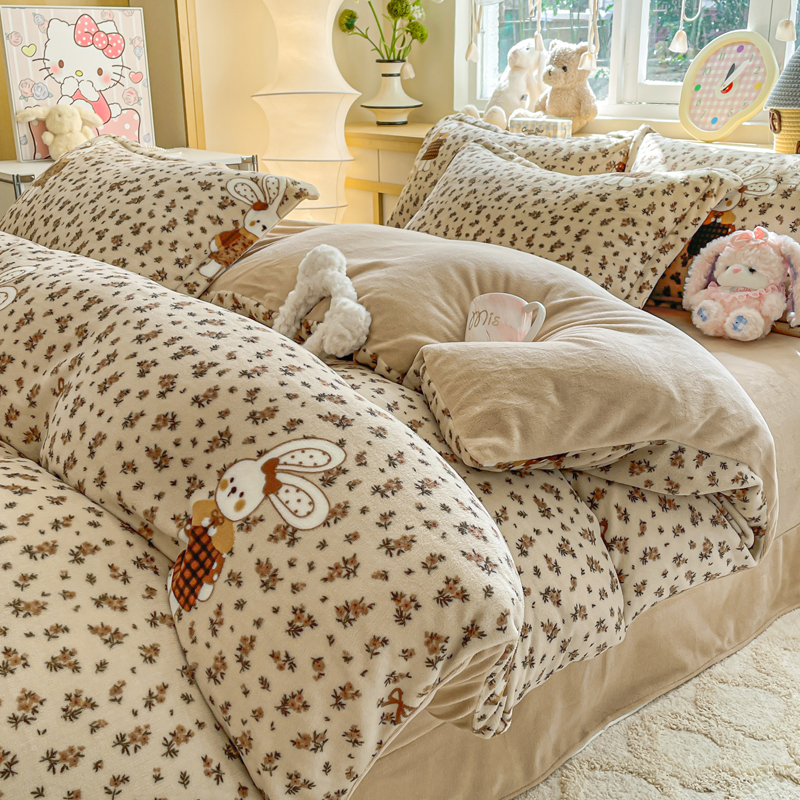 弗苓家纺 2025新款加厚保暖双面牛奶绒四件套 爱丽丝花园