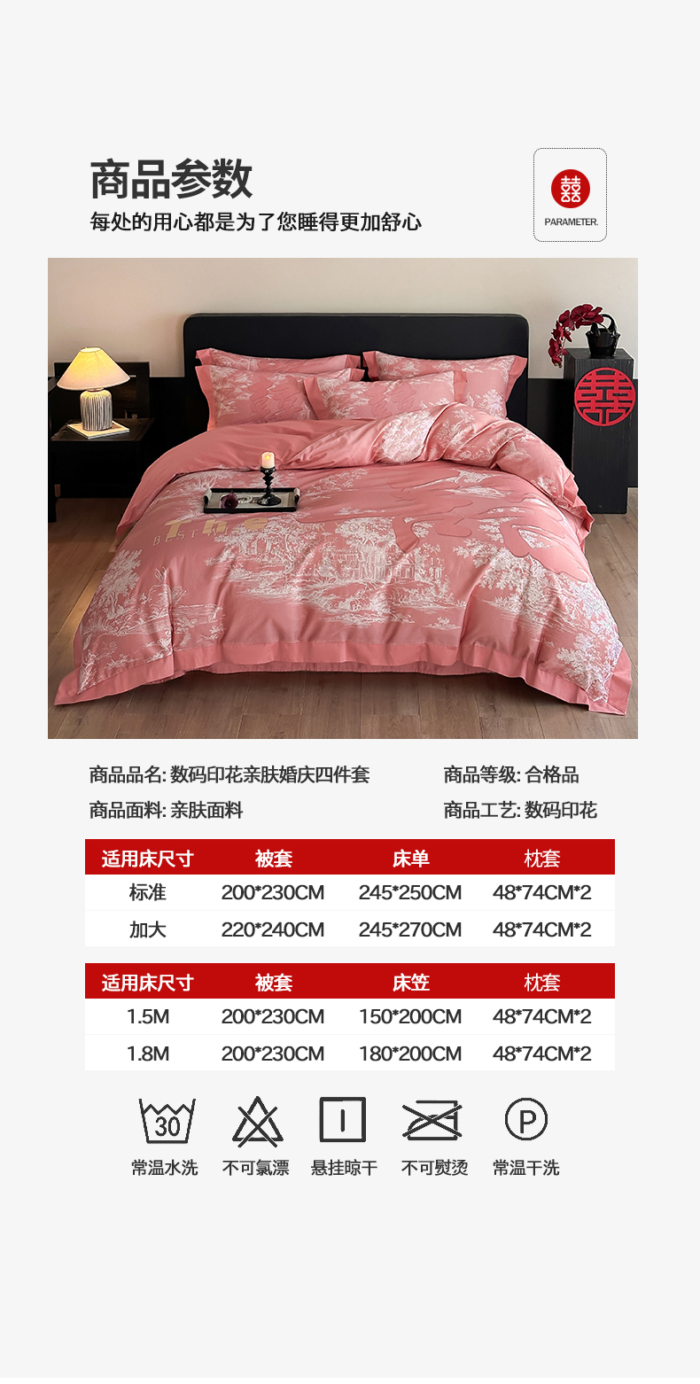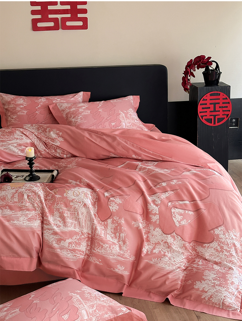商品名称:置顶家纺 2025新款时禧婚庆亲肤数码印花四件套 禧时-粉