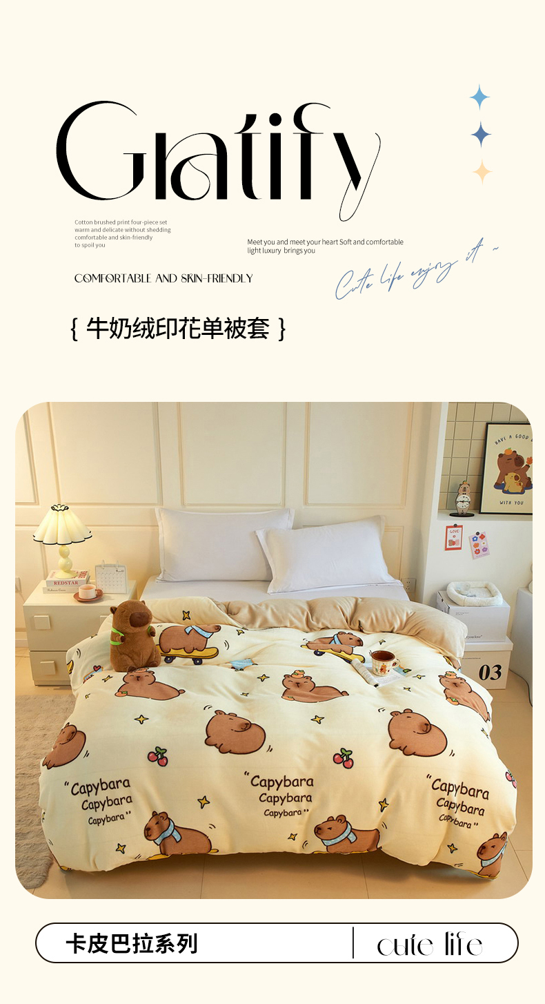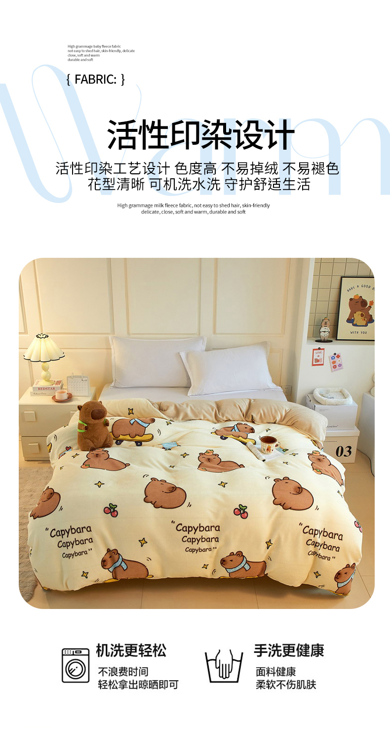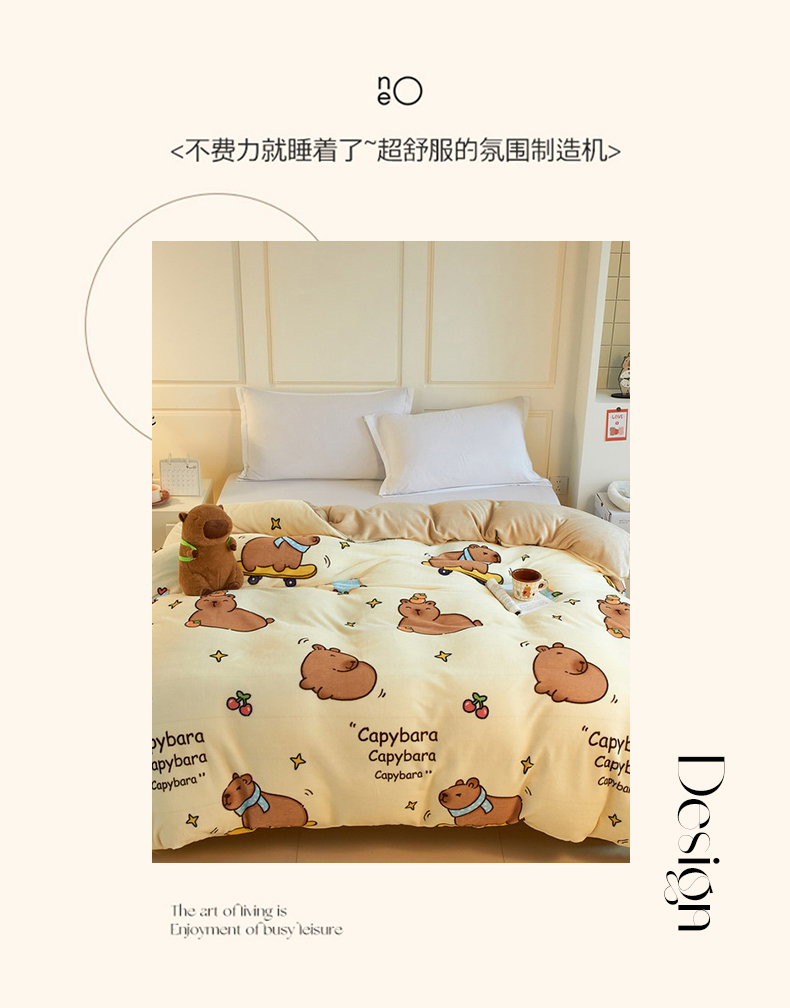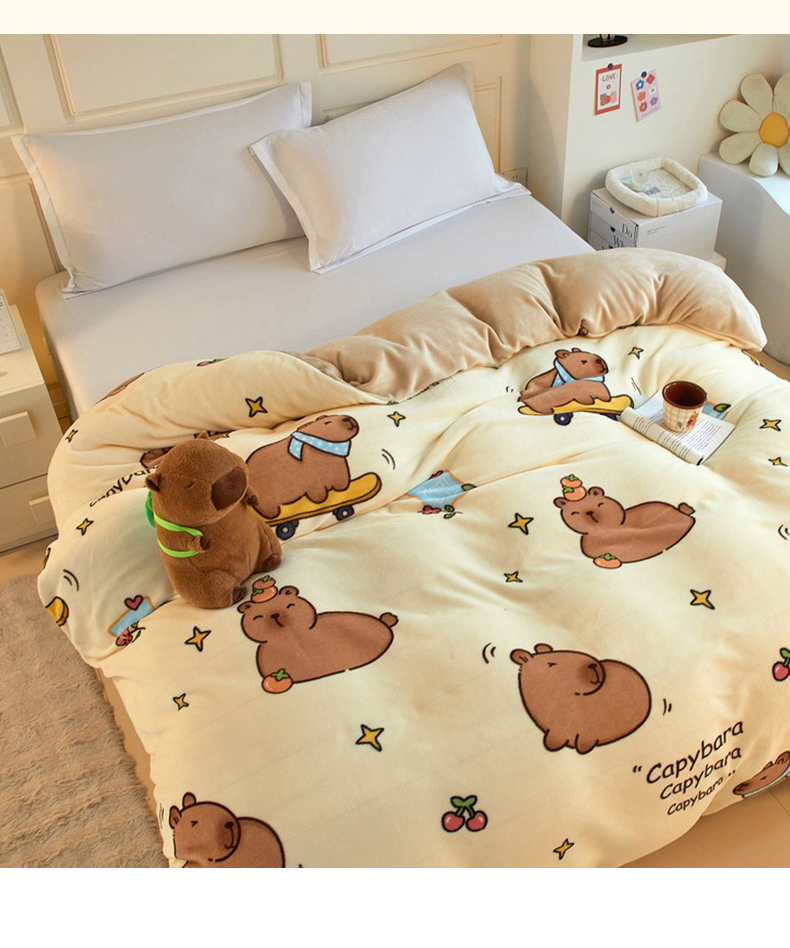 商品名称:蘭菲家纺 2025新款卡皮巴拉牛奶绒单被套 被套单件 爱滑板