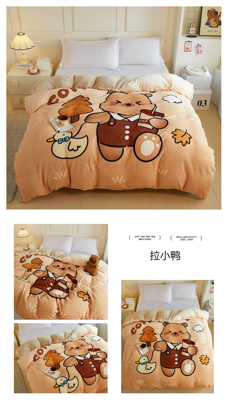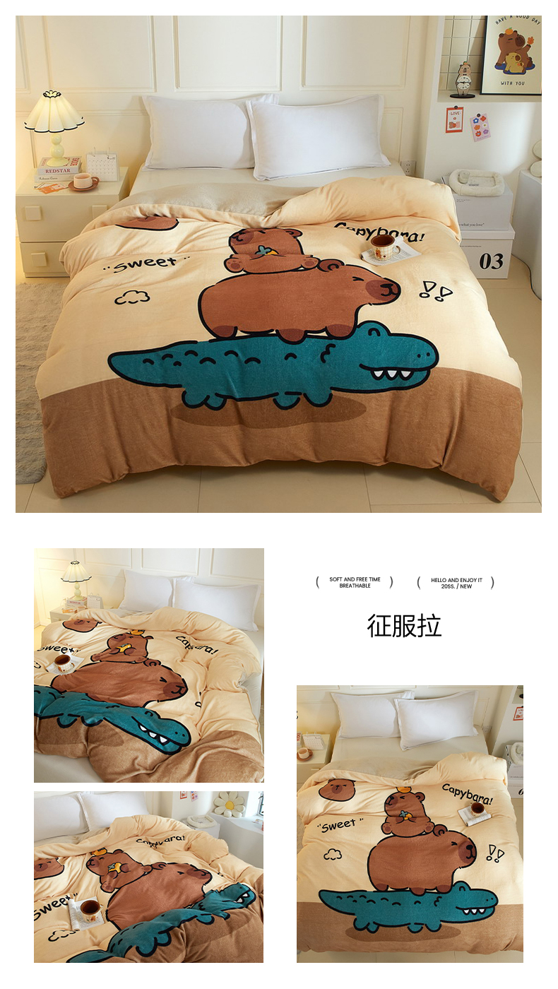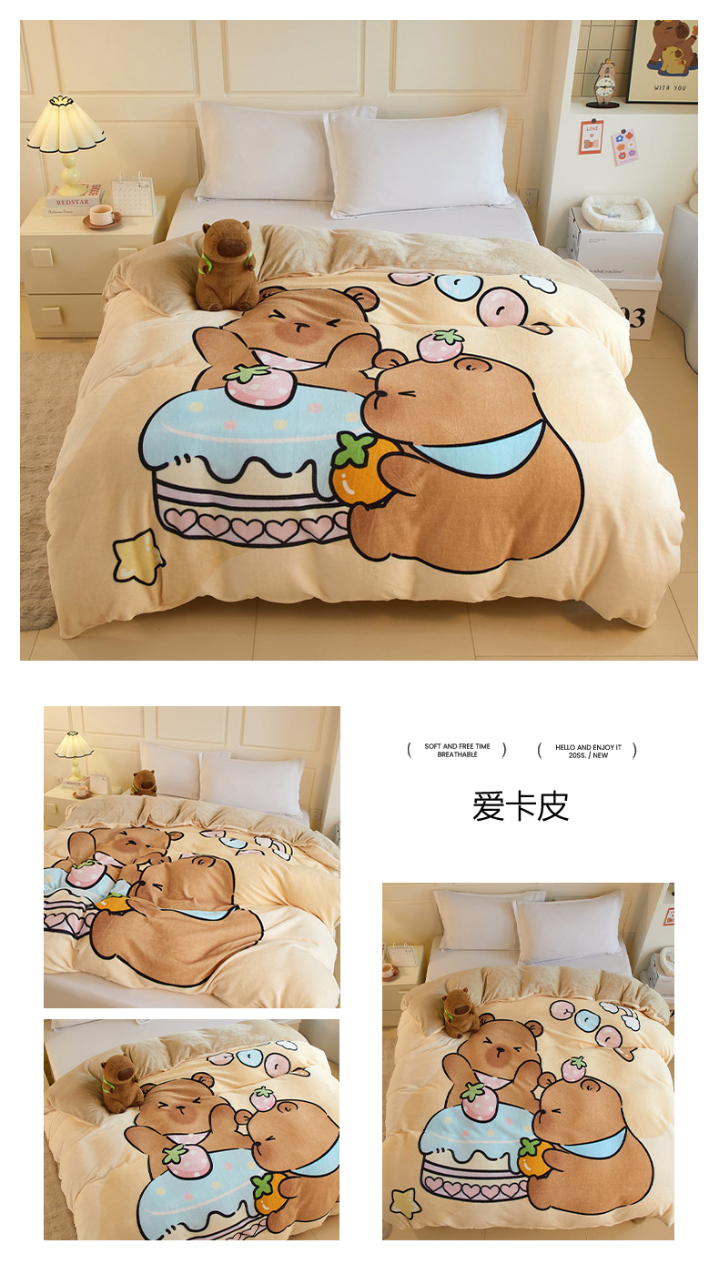 商品名称:蘭菲家纺 2025新款卡皮巴拉牛奶绒单被套 被套单件 爱滑板