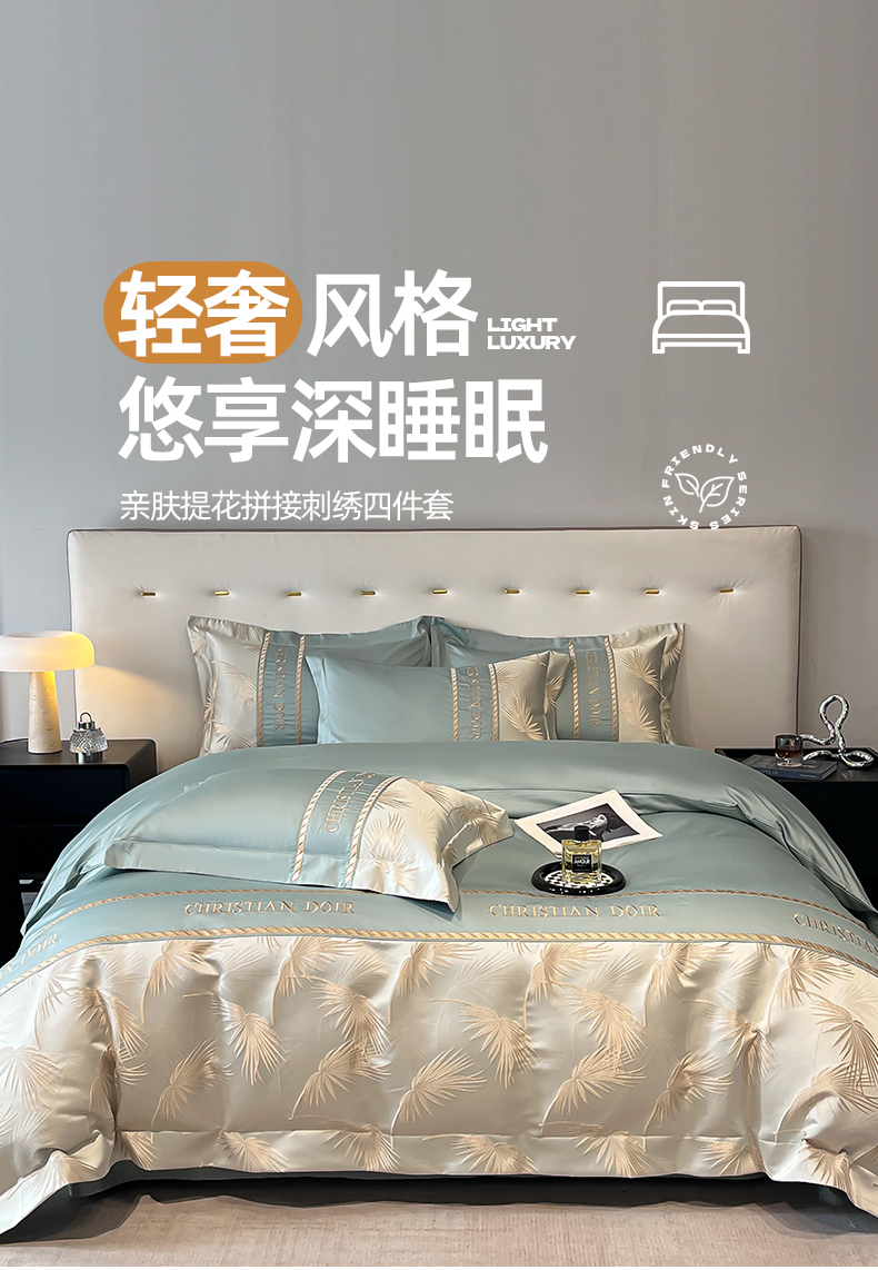 当前位置: 91家纺网 > 商品网购 > 床品套件 > 四件套 > 提花四件套 > 置顶家纺 2025新款亲肤提花拼接刺绣四件套系列 颜予-繁星蓝