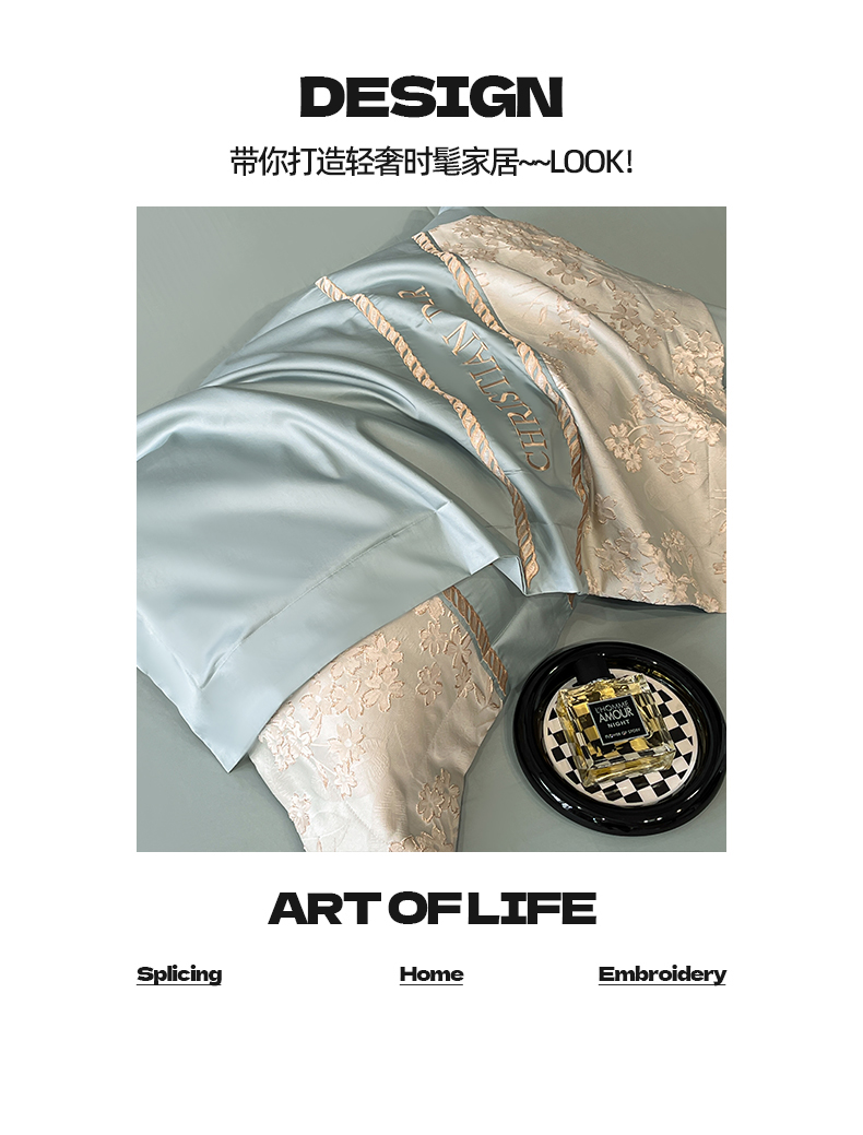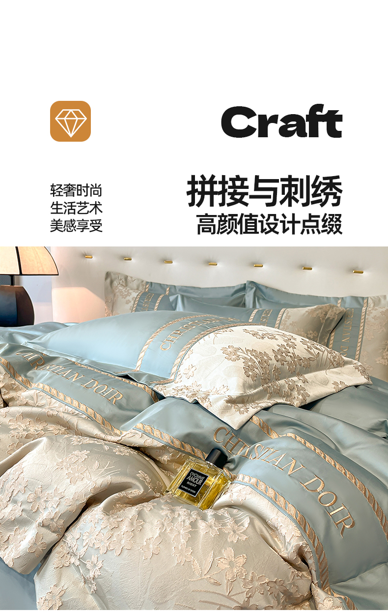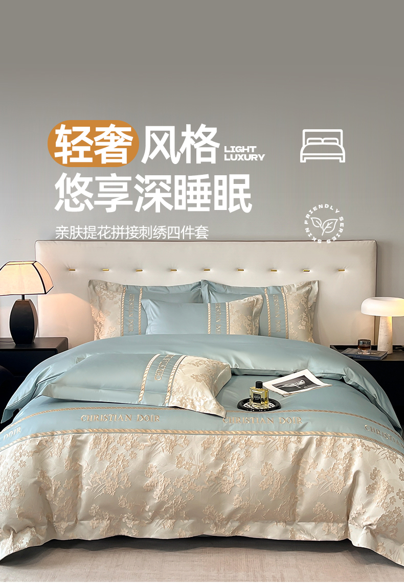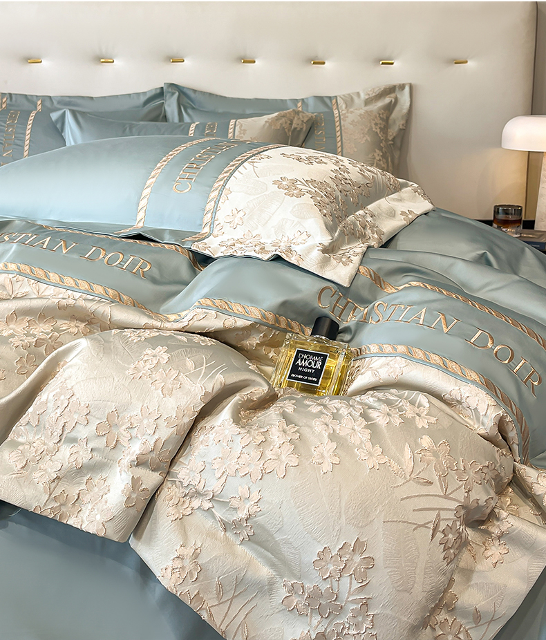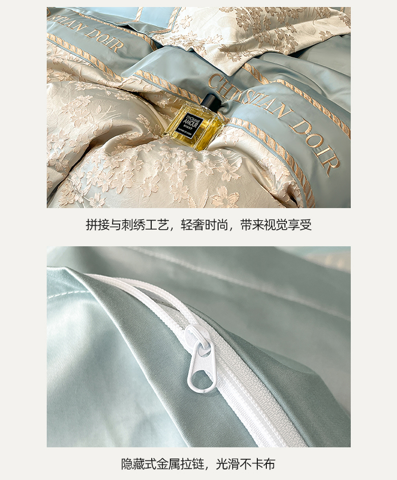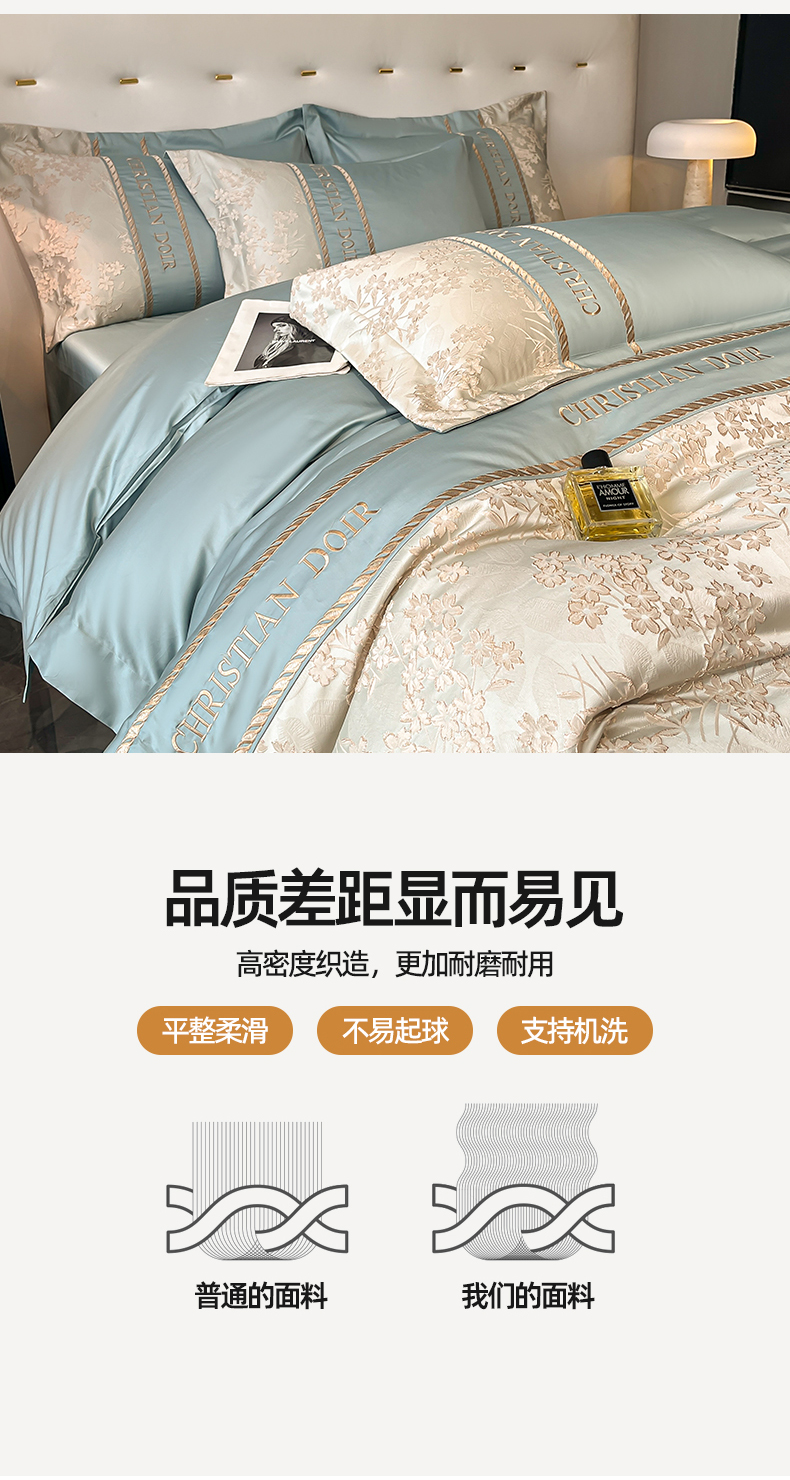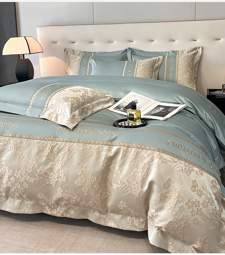(总)置顶家纺 2026新款亲肤棉玫瑰刺绣提花卡罗拉系列四件套,卡罗拉-碧蓝,卡罗拉-魅粉,卡罗拉-浅香槟,卡罗拉-天空蓝