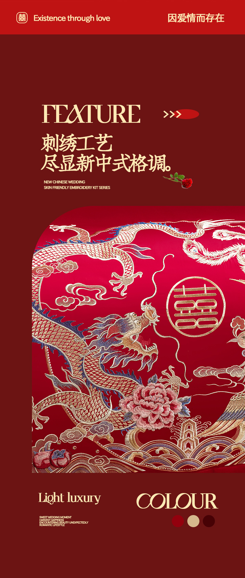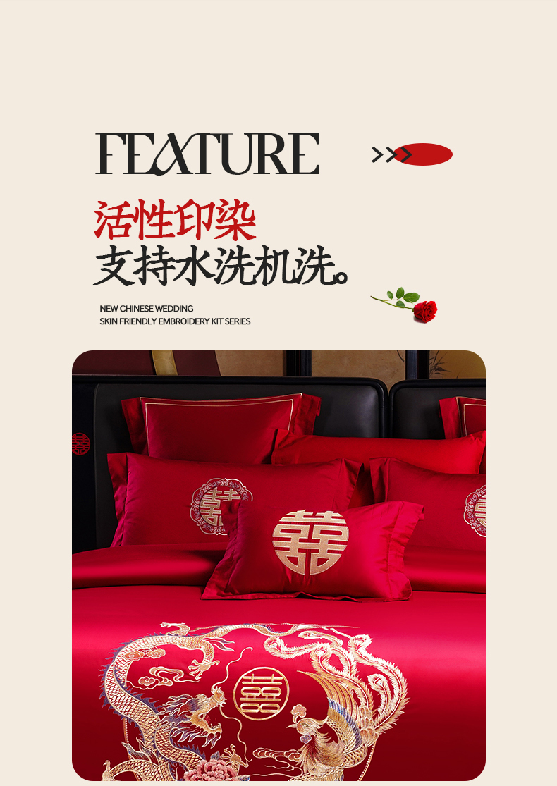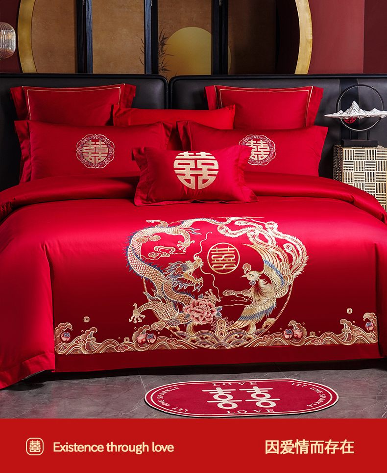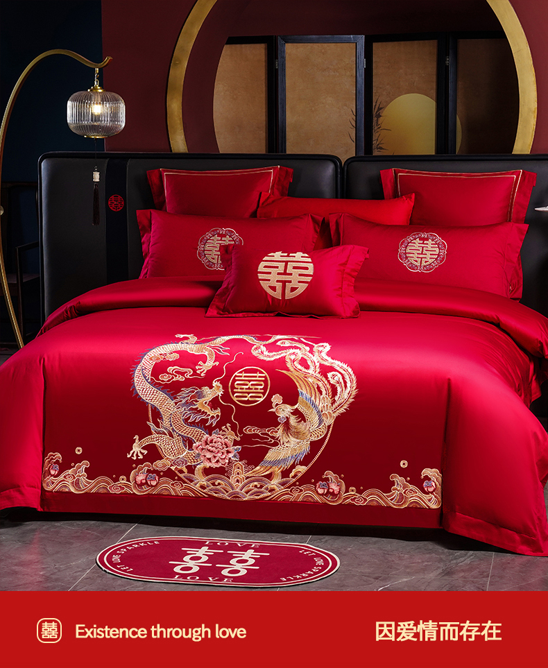 当前位置: 91家纺网 > 商品网购 > 床品套件 > 四件套 > 婚庆四件套 > 置顶家纺 2025新款新中式婚庆亲肤刺绣四件套 缔结良缘-大红