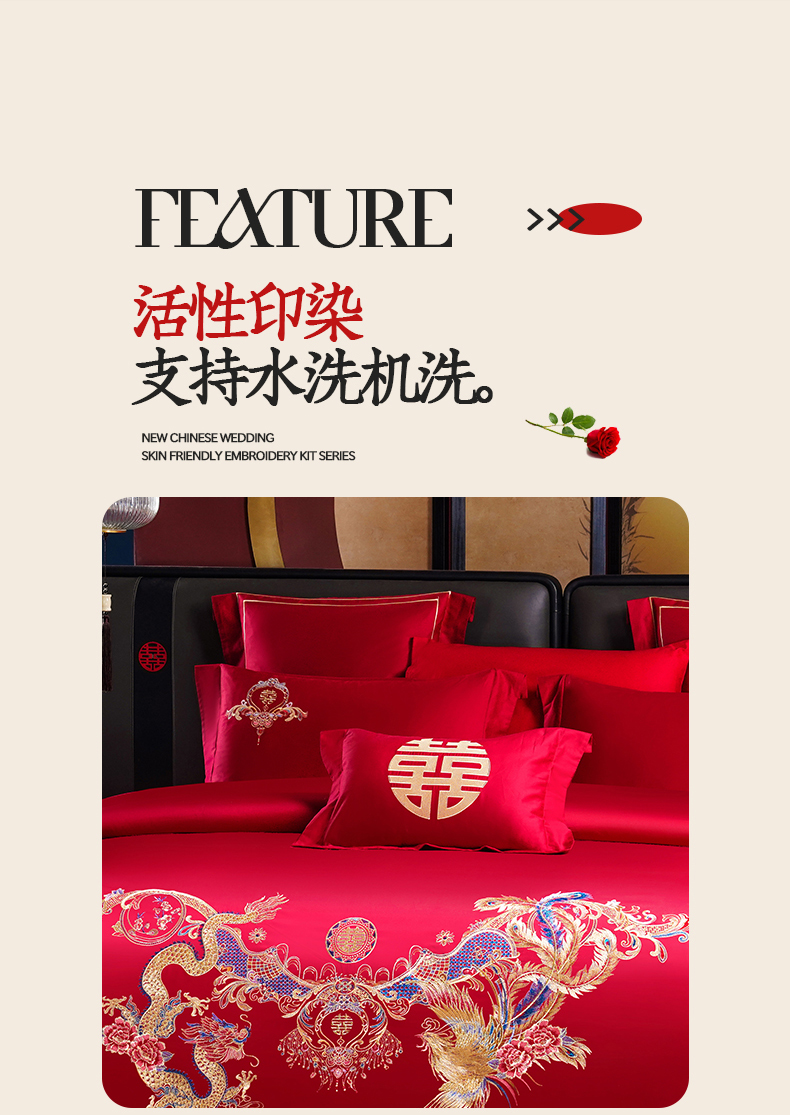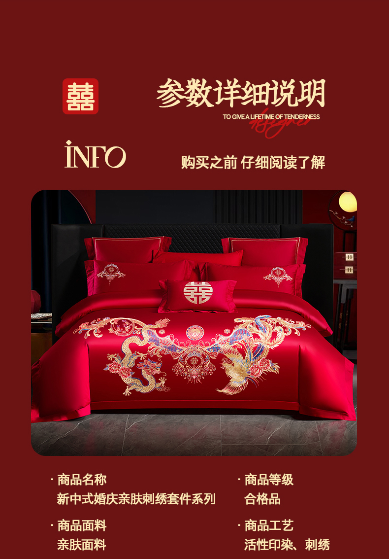 当前位置: 91家纺网 > 商品网购 > 床品套件 > 四件套 > 婚庆四件套 > 置顶家纺 2025新款新中式婚庆亲肤刺绣四件套 龙凤喜至-大红