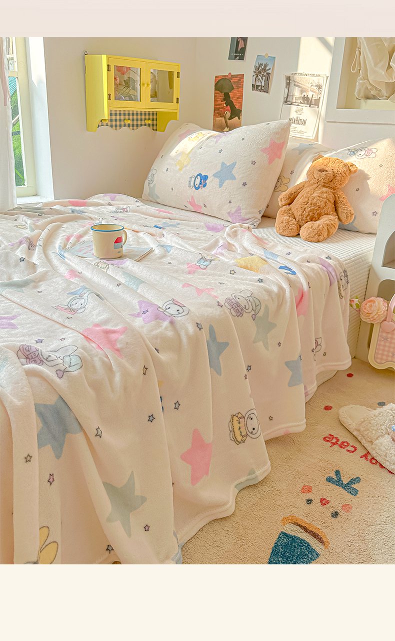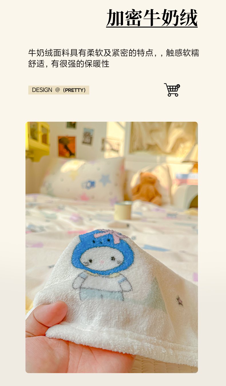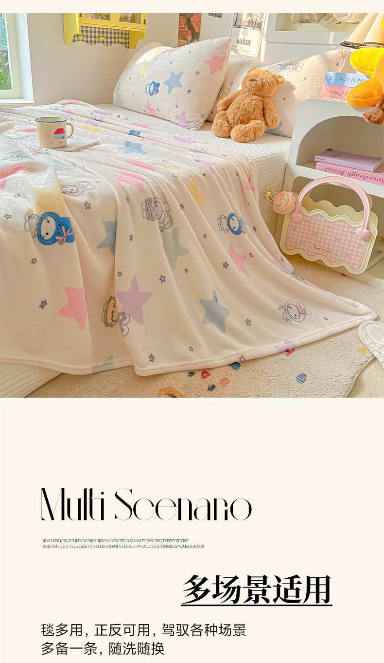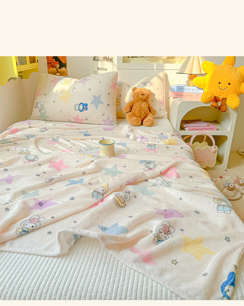 商品名称:韩巢家纺 2025新款四季可用牛奶绒多功能毛毯 星星米菲