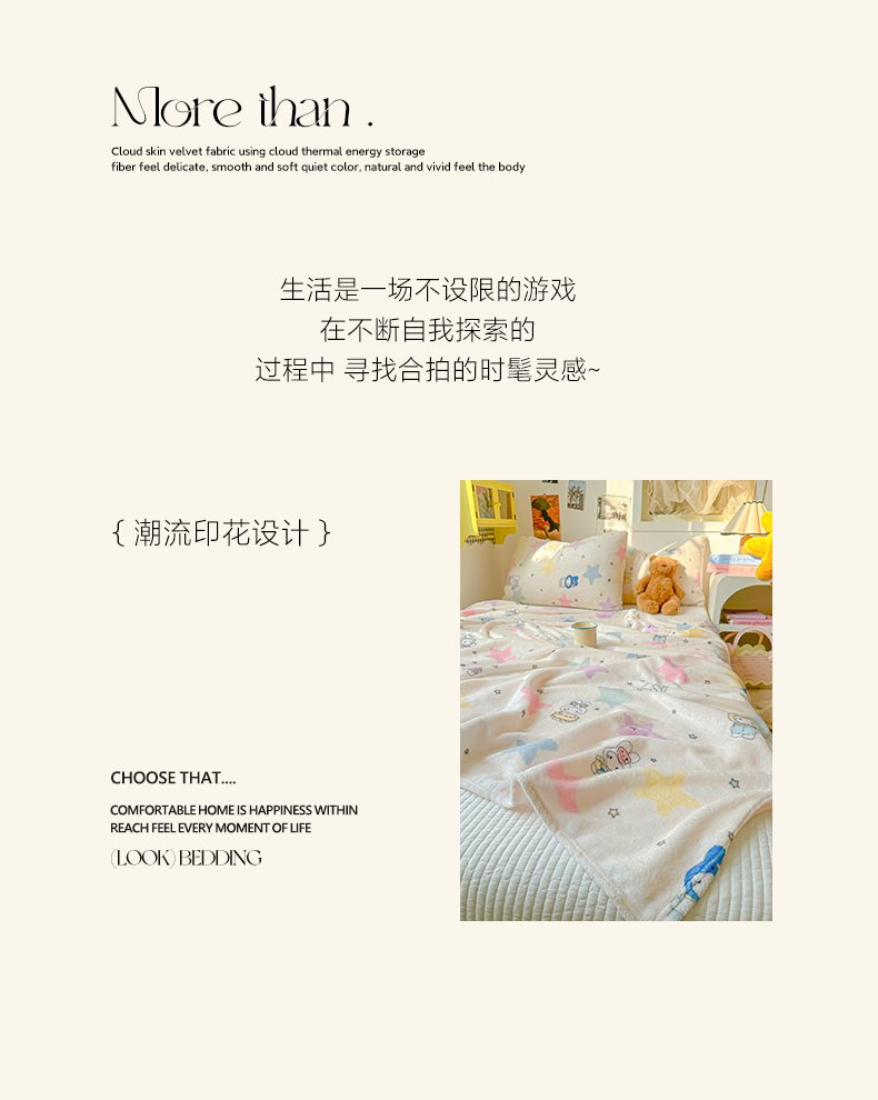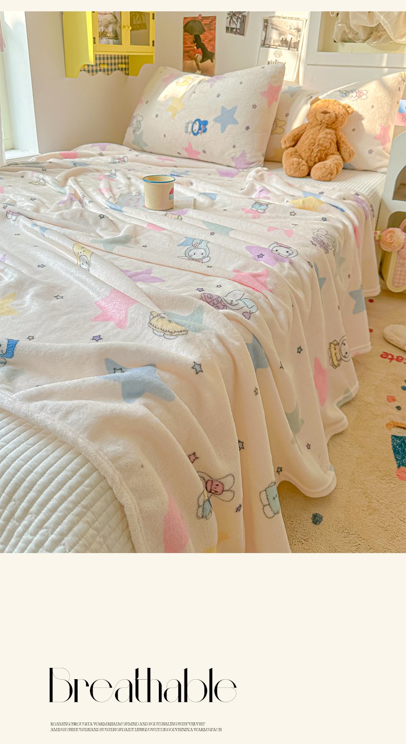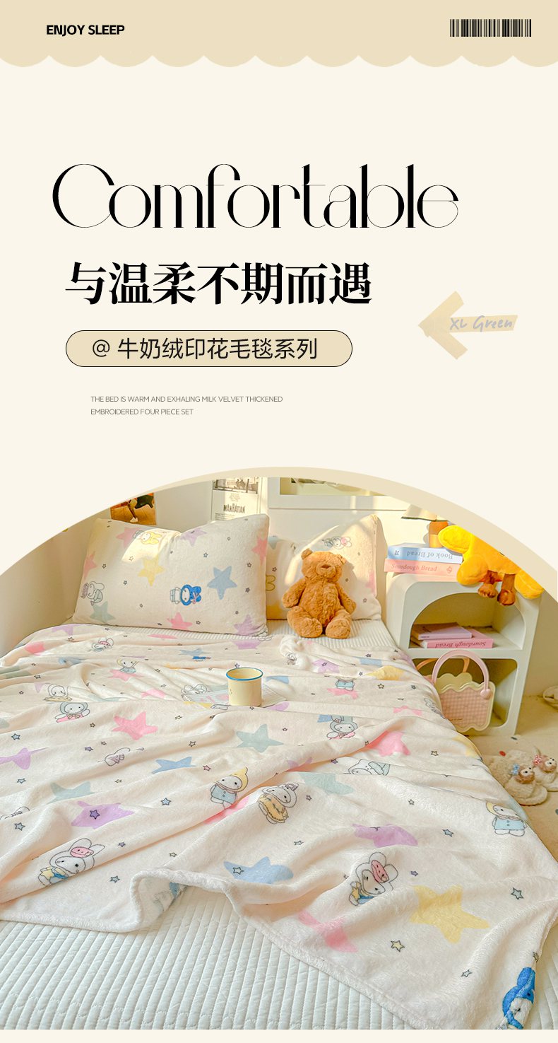 商品名称:韩巢家纺 2025新款四季可用牛奶绒多功能毛毯 星星米菲