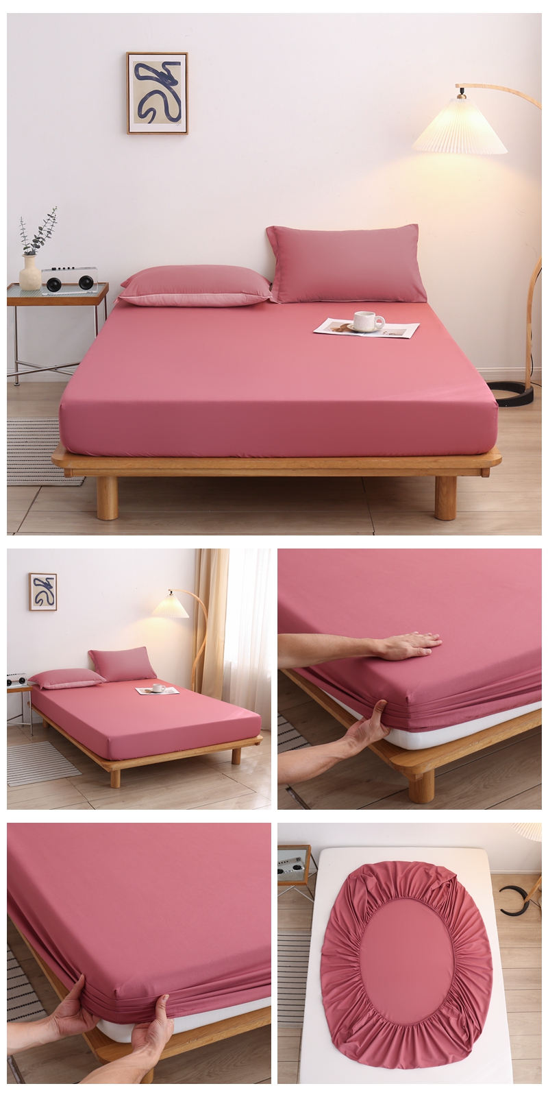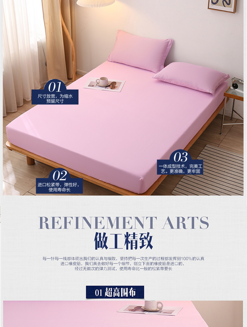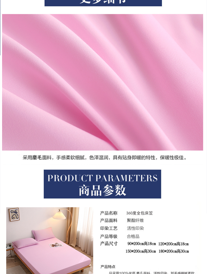 商品名称:啊雅家居 2025新款简约单人床笠双人床笠水洗磨毛床笠 粉色