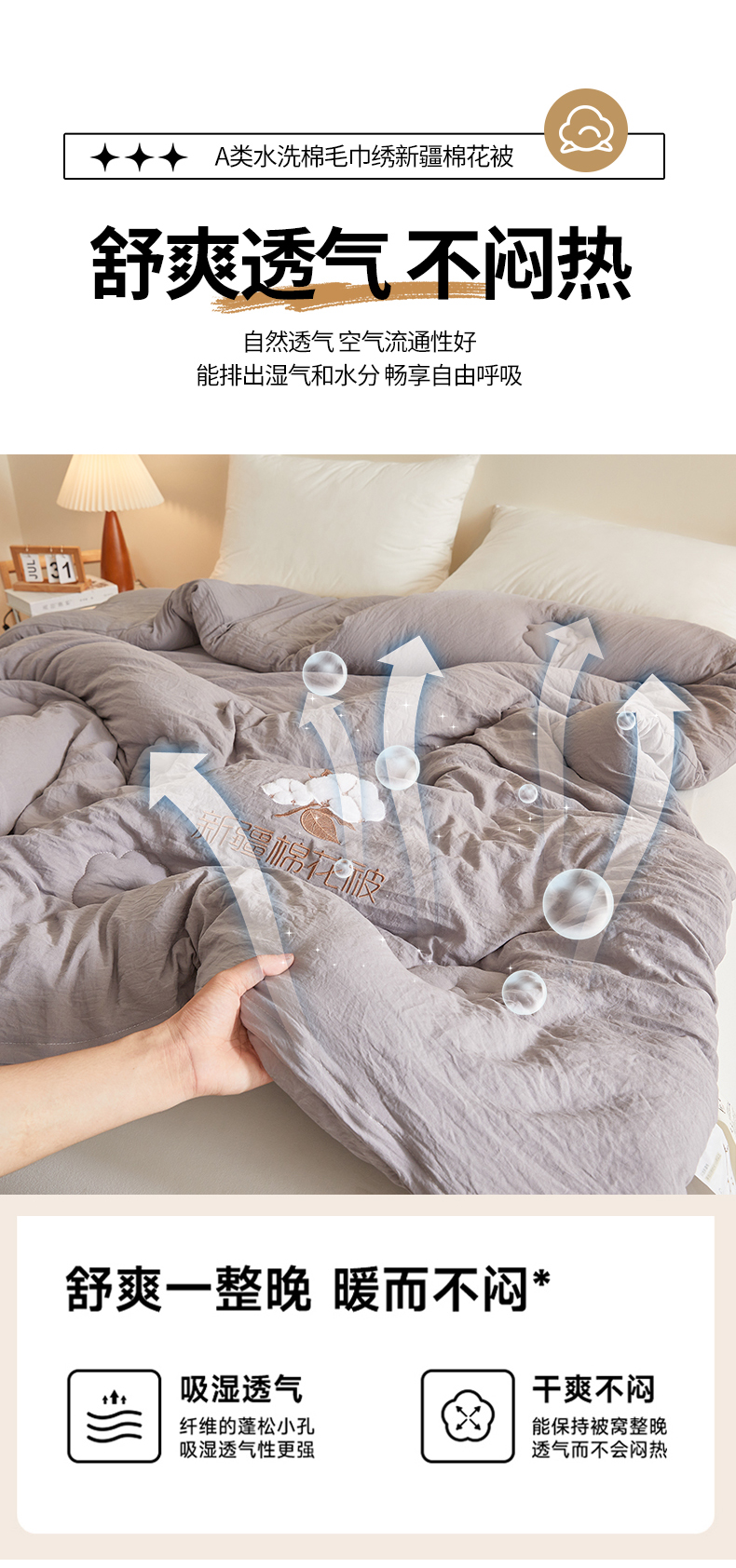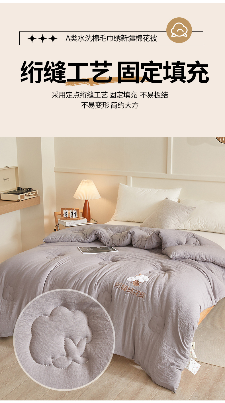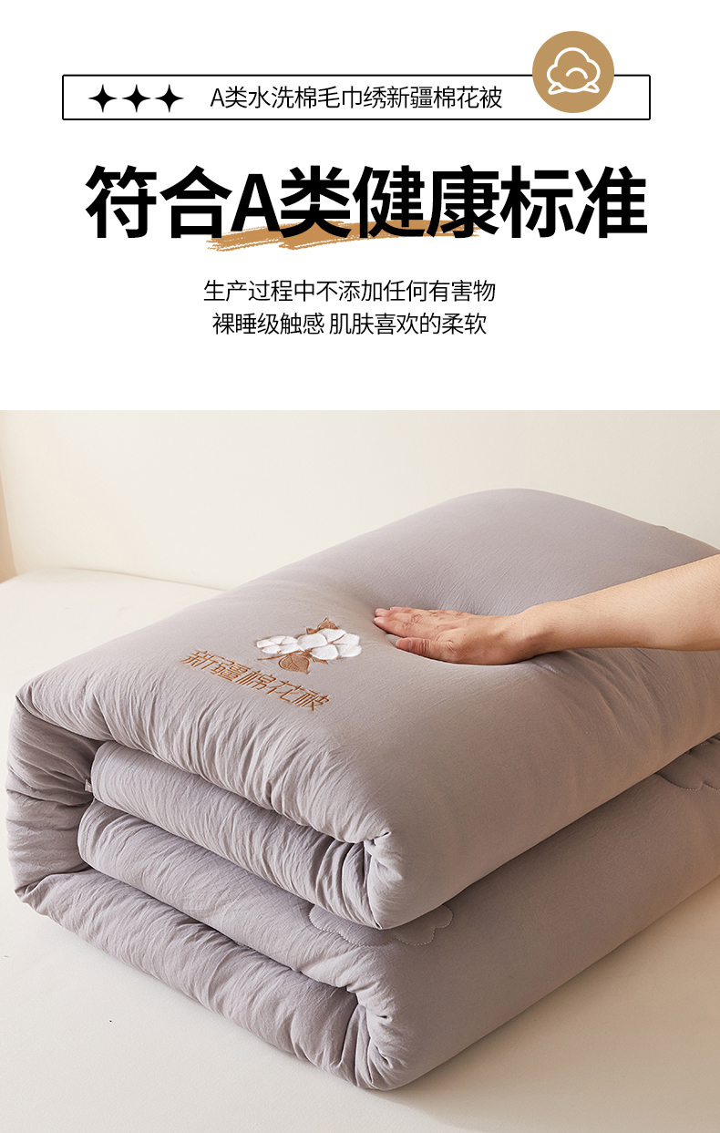 • 91家纺网 家纺一手货源 找家纺 西域种棉人 2025新款新疆纯棉花被子带皱手工水洗棉冬被被芯春秋被四季用盖被 云暖-灰