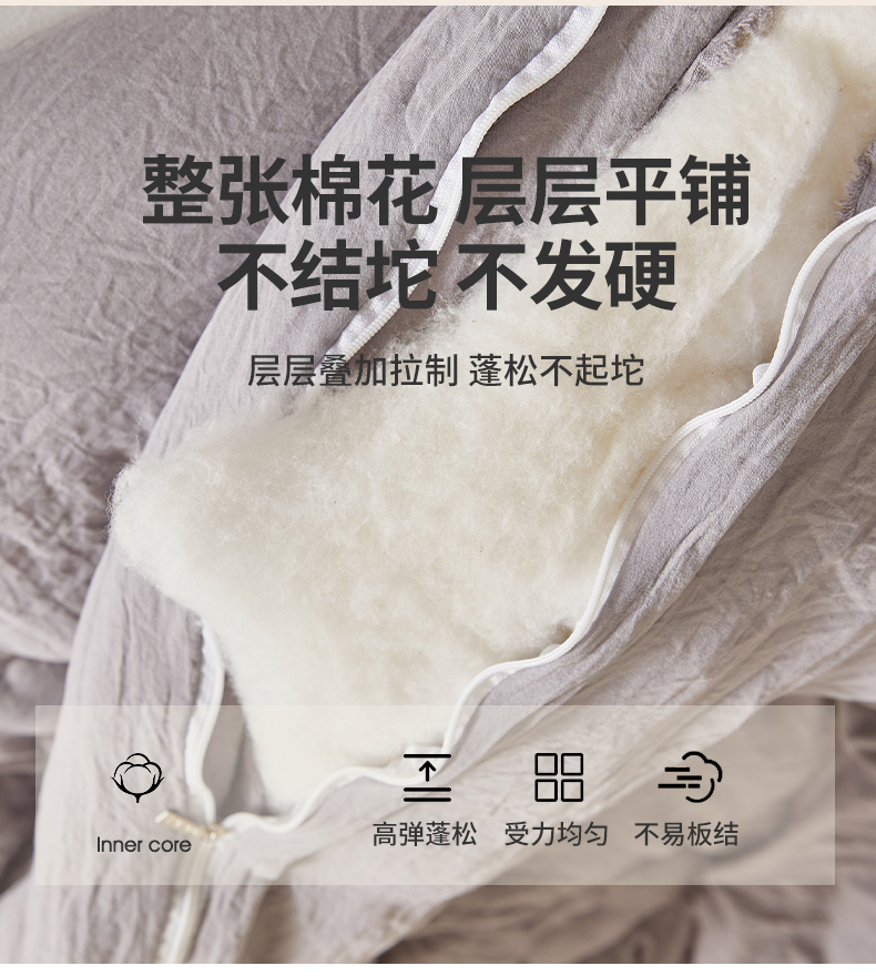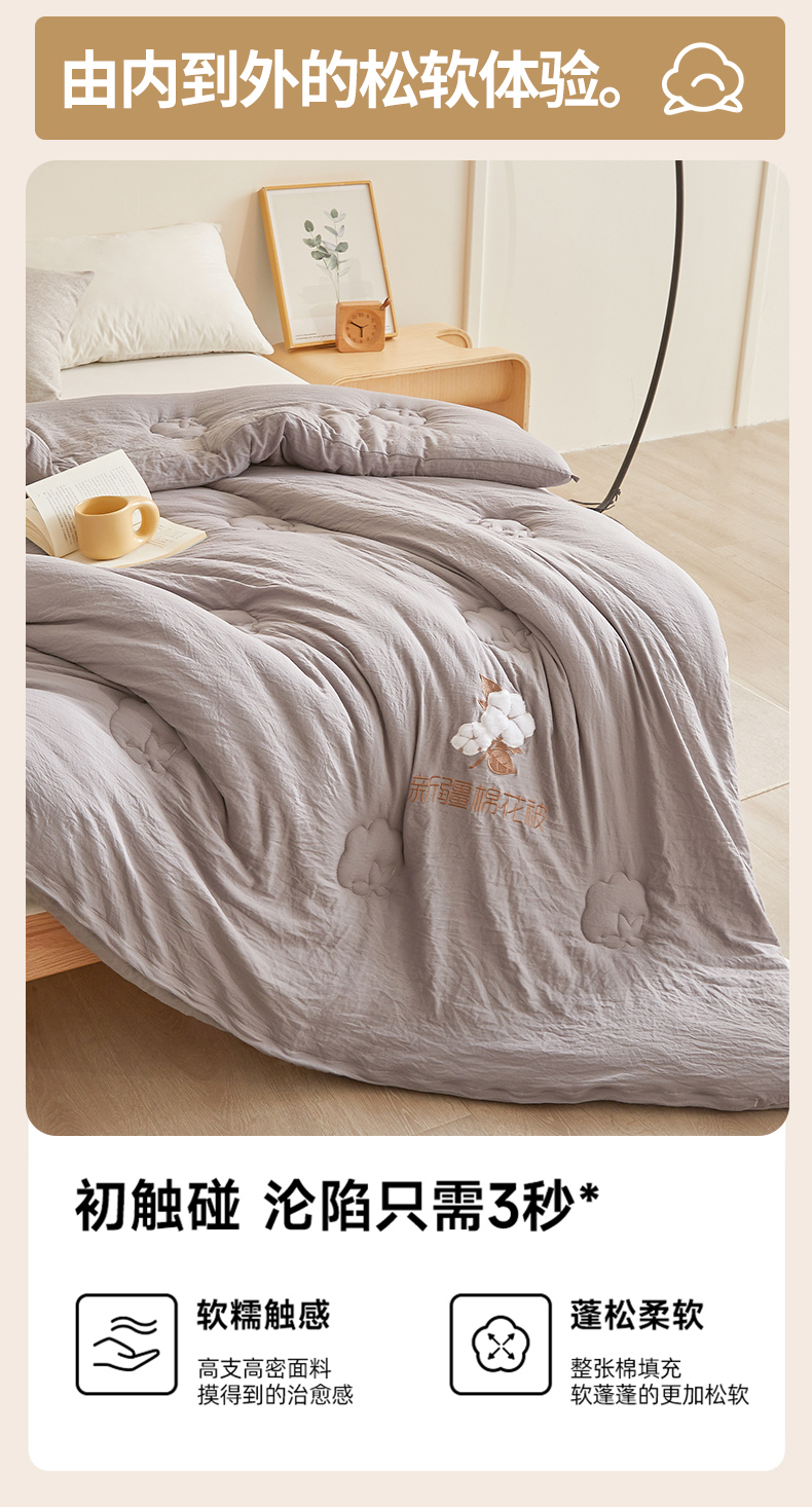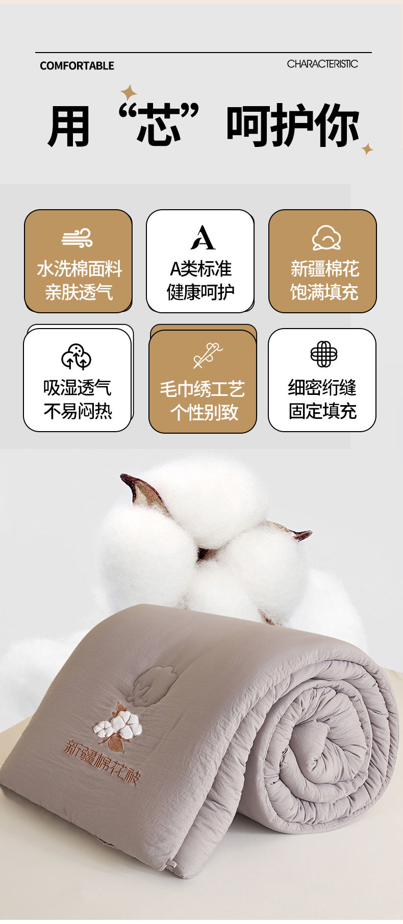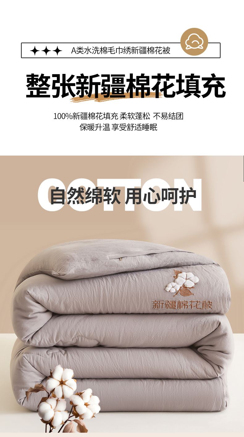 • 91家纺网 家纺一手货源 找家纺 西域种棉人 2025新款新疆纯棉花被子带皱手工水洗棉冬被被芯春秋被四季用盖被 云暖-灰