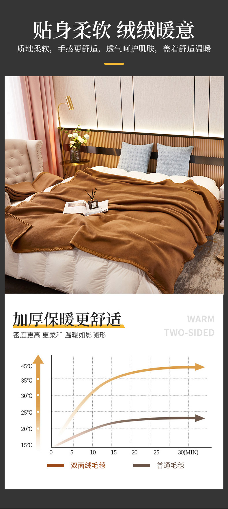 (总)悦织湾家纺 2025新款双面绒宾馆酒店毯涤纶仿羊绒毯纯色驼色毛毯可供跨境可开专票可定制颜色尺寸